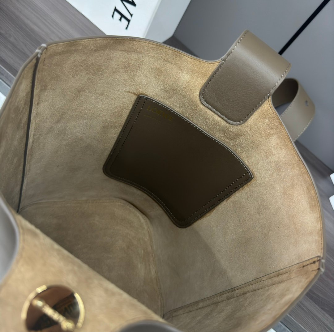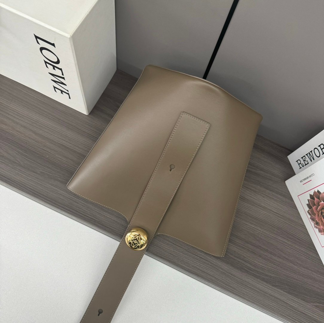 L⊚℮w℮🌟 Medium Soft Cowhide Pebble Bucket The Pebble Bucket blends pure minimalist lines with attention-grabbing styling to create a unique and innovative handbag design. The signature Anagram-engraved hardware is both decorative and functional, the shoulder strap is adjustable in length and can be carried in a variety of ways, and the unique twisted construction is complemented by subtle details. This medium version is crafted from supple cowhide leather. Crossbody*Shoulder or handheld*Adjustable detachable shoulder strap*Magnetic snap closure*Interior pocket*Synthetic leather lining*Anagram engraved pebbles.