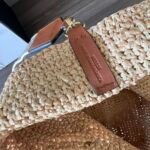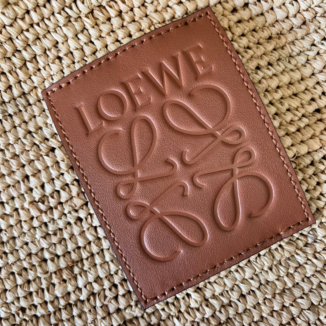 versatile Slit Tote bag with top handles and body made of soft hand-woven raffia. This mini version comes with a 𝑳𝒐𝒆𝒘𝒆 jacquard shoulder strap.*Carry over the shoulder or by hand. Removable and Adjustable Shoulder Strap* Unlined Anagram Embossed Patch. A must-have for photo gravure type, super nice [seduction][seduction][seduction]