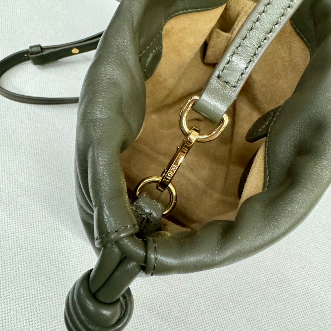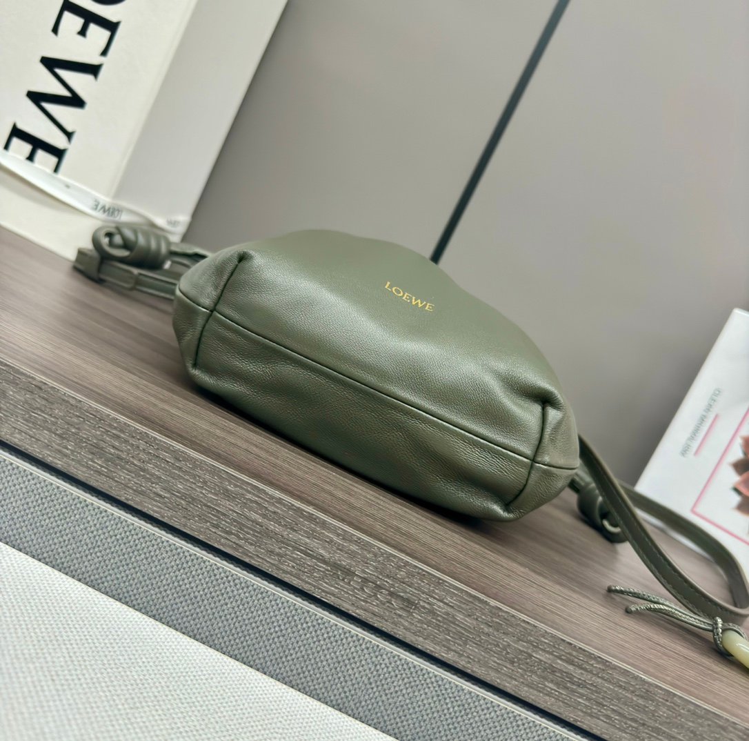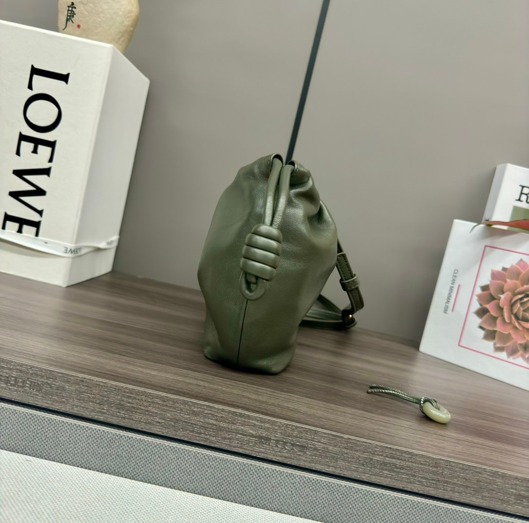 Home BAGS LOEWE L⊚℮w℮🌟 New 🆕 Mini Napa Sheep Leather Flamenco Purse Clutch Closed with a drawstring and finished with a signature coiled knot, the Flamenco Purse has been subtly reimagined with a slim knot and pleats. The top creates a soft and sensual drape. This version is crafted in soft Napa sheep leather. The handbag is from the Jade collection and holds a lucky jade stone in the same color scheme.*Can be worn crossbody or over the shoulder*Removable adjustable shoulder strap*Low-profile magnetic snap closure*Suede liningL⊚℮w℮Foil stamping. nModel:262333nSize:23*5.5*17CMn