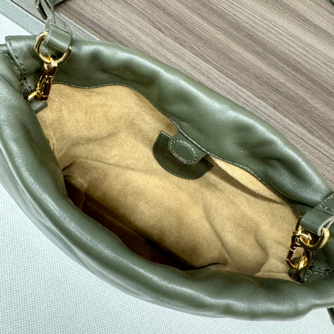 L⊚℮w℮🌟 New 🆕 Mini Napa Sheep Leather Flamenco Purse Clutch Closed with a drawstring and finished with a signature coiled knot, the Flamenco Purse has been subtly reimagined with a slim knot and pleats. The top creates a soft and sensual drape. This version is crafted in soft Napa sheep leather. The handbag is from the Jade collection and holds a lucky jade stone in the same color scheme.*Can be worn crossbody or over the shoulder*Removable adjustable shoulder strap*Low-profile magnetic snap closure*Suede liningL⊚℮w℮Foil stamping. nModel:262333nSize:23*5.5*17CMn
