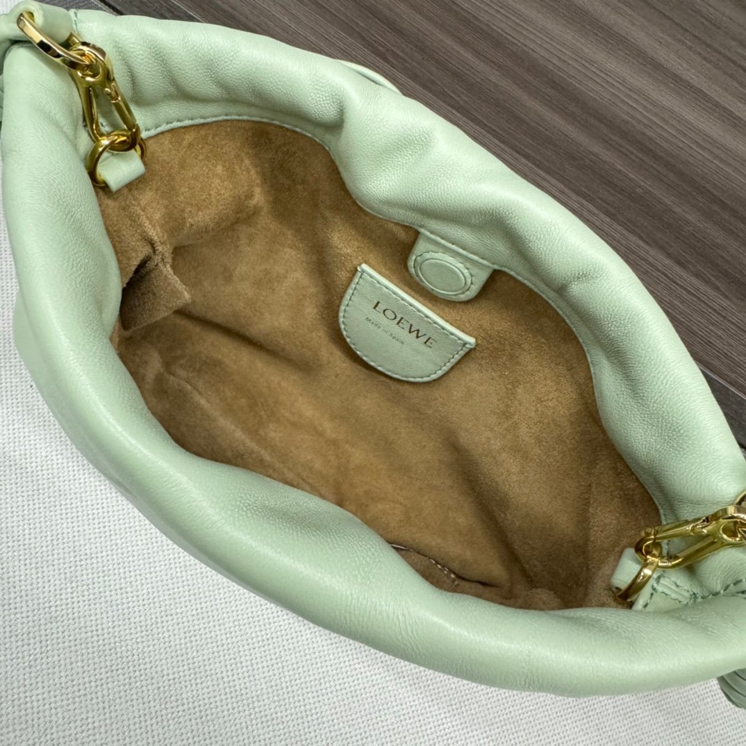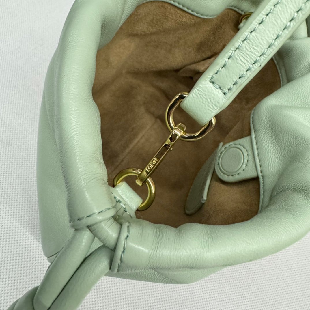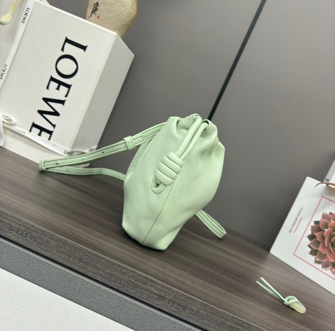 Home BAGS LOEWE L⊚℮w℮🌟 New 🆕 Mini Napa Sheep Leather Flamenco Purse Clutch Closed with a drawstring and finished with a signature coiled knot, the Flamenco Purse has been subtly reimagined with a slim knot and pleats. The top creates a soft and sensual drape. This version is crafted in soft Napa sheep leather. The handbag is from the Jade collection and holds a lucky jade stone in the same color scheme.*Can be worn crossbody or over the shoulder*Removable adjustable shoulder strap*Low-profile magnetic snap closure*Suede liningL⊚℮w℮Foil stamping. nModel:262333nSize:23*5.5*17CMn