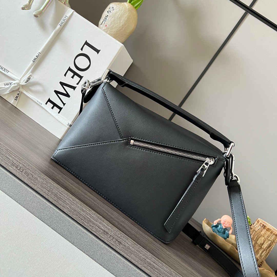 L⊚℮w℮🌟 🔥Mini Puzzle Edge Handbag in Napa Cow Leather 🌟LOEWE presents its debut tote bag*The rectangular shape and precise cutting techniques create the Puzzle's distinctive geometric lines*This mini version is made in Napa cow leather with a cage flap Stitched edges 🌟n Mini Puzzle can hold, for example, a small vertical wallet, most sizes of cell phones (up to 6.1 inches) and sunglasses cases, over the shoulder or crossbody*Shoulder strap is adjustable and removable*One interior slit pocket and one exterior back zipper pocket*Cowhide zipper head*Herringbone cotton canvas liningAnagram embossing 🌟nsize:18*12.5*8C Mnodel:062212n