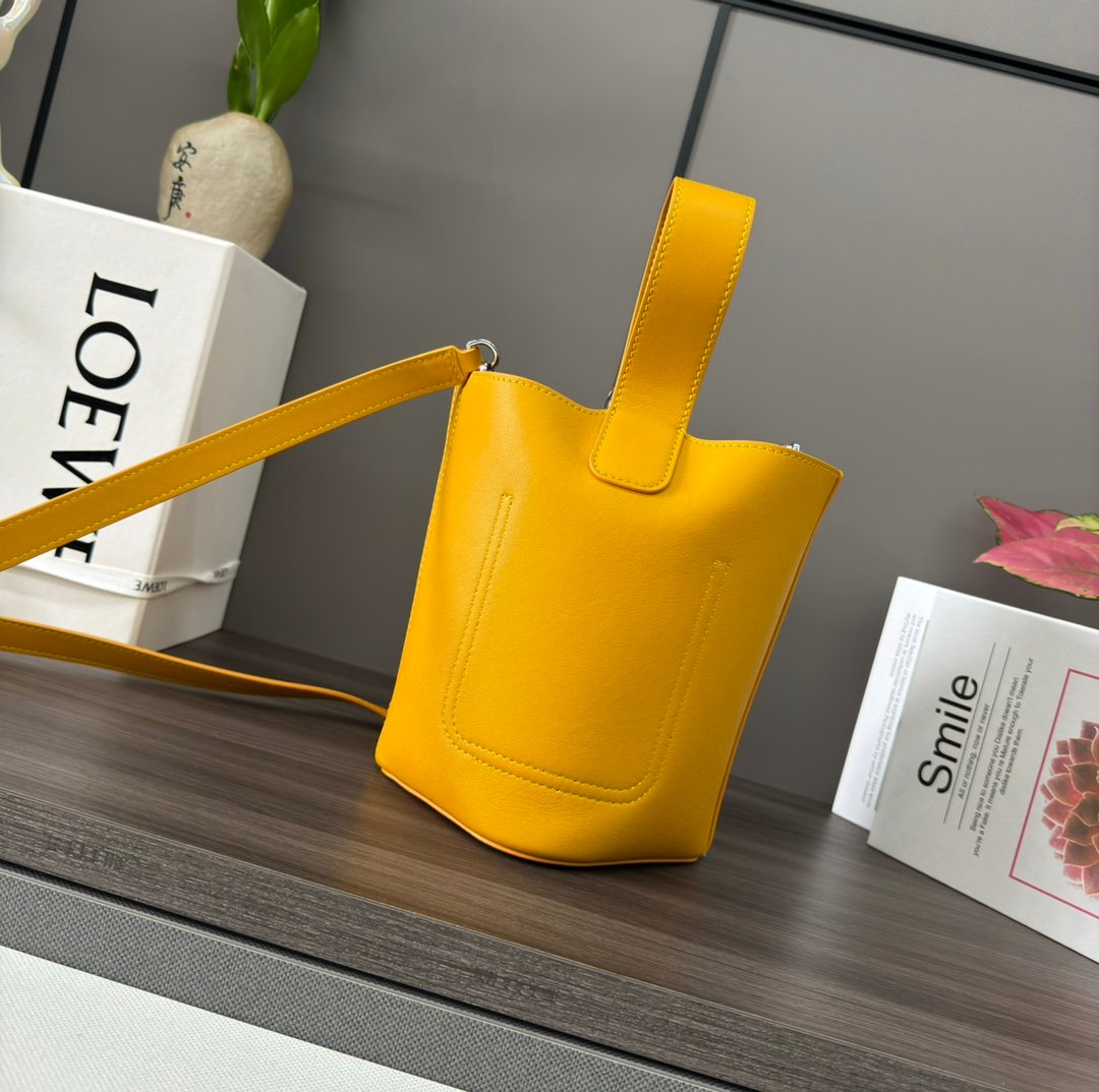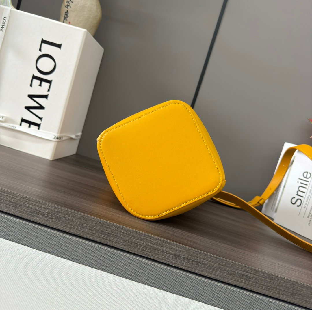 Home BAGS LOEWE L⊚℮w℮🌟mini Soft Cowhide Pebble Bucket The Pebble Bucket is a unique and innovative bag design that blends pure minimalist lines with attention-grabbing styling. The signature Anagram-engraved hardware is both decorative and functional, the shoulder strap is adjustable in length and can be carried in a variety of ways, and the unique twisted construction is complemented by subtle details. This mini version is made from supple cowhide leather. Crossbody*Shoulder or handheld*Adjustable detachable shoulder strap*Magnetic closure*Interior pocket*Synthetic leather lining*Anagram engraved pebbles. nsize:16*16*19.5CMnModel No.: 062342n