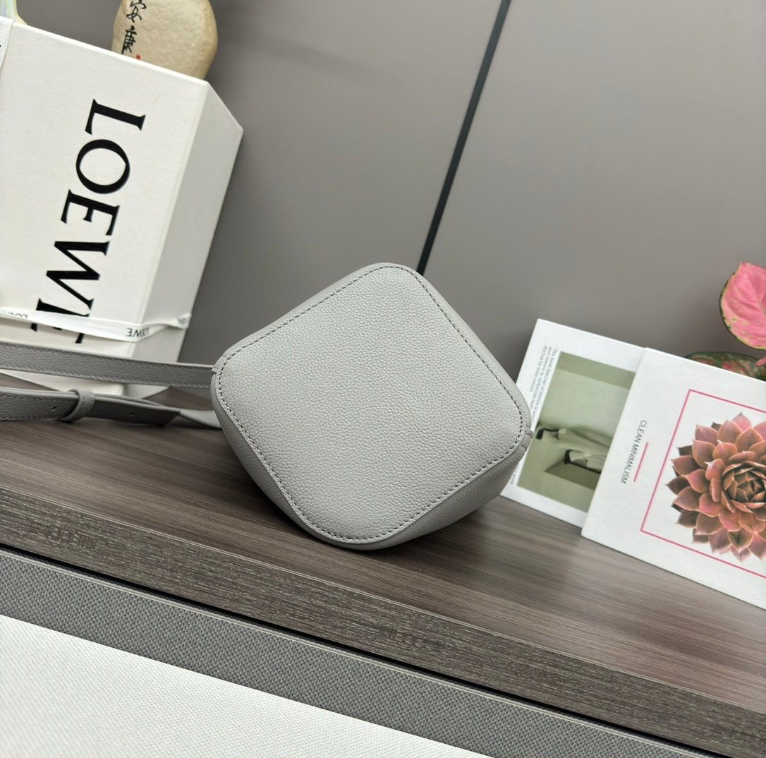 L⊚℮w℮🌟mini Soft Grain Cowhide Pebble Bucket The Pebble Bucket blends pure minimalist lines with attention-grabbing styling to create a unique and innovative handbag design. The signature Anagram-engraved hardware is both decorative and functional, the shoulder strap is adjustable for length and versatility, and the unique twisted construction is complemented by subtle details. This mini version is made of soft grained cowhide leather. Crossbody*Shoulder or handheld*Adjustable detachable shoulder strap*Magnetic closure*Interior pocket*Synthetic leather lining*Anagram engraved pebbles.