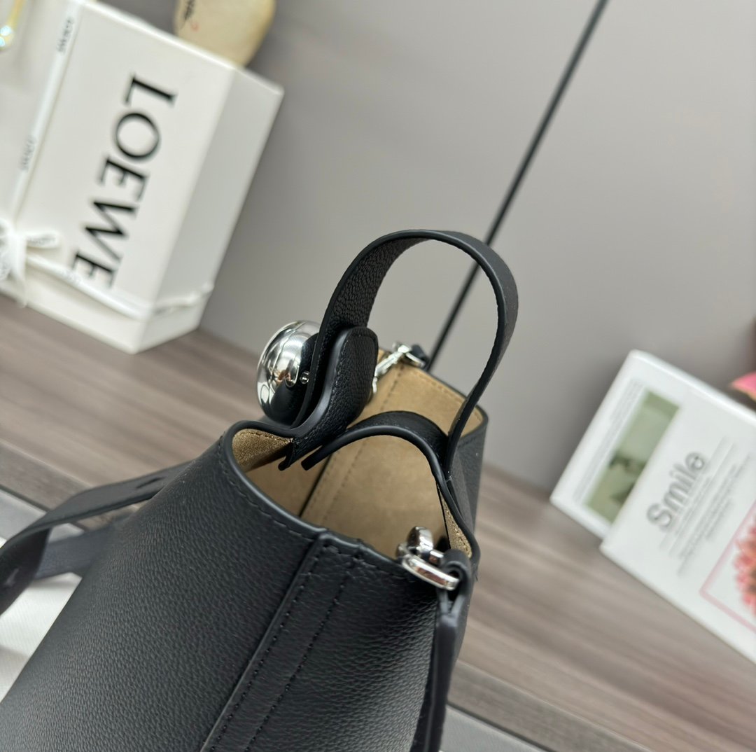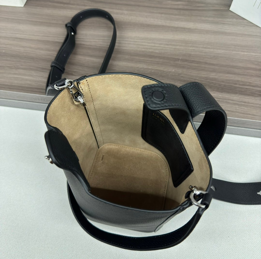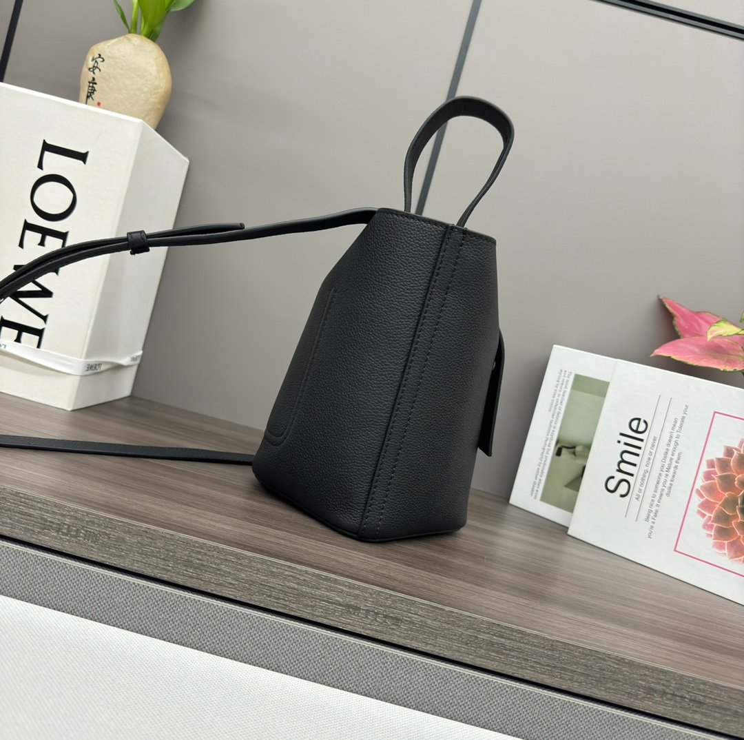 L⊚℮w℮🌟mini Soft Grain Cowhide Pebble Bucket The Pebble Bucket blends pure minimalist lines with attention-grabbing styling to create a unique and innovative handbag design. The signature Anagram-engraved hardware is both decorative and functional, the shoulder strap is adjustable for length and versatility, and the unique twisted construction is complemented by subtle details. This mini version is made of soft grained cowhide leather. Crossbody*Shoulder or handheld*Adjustable detachable shoulder strap*Magnetic closure*Interior pocket*Synthetic leather lining*Anagram engraved pebbles. nsize:16*16*19.5CMnModel No.:062342