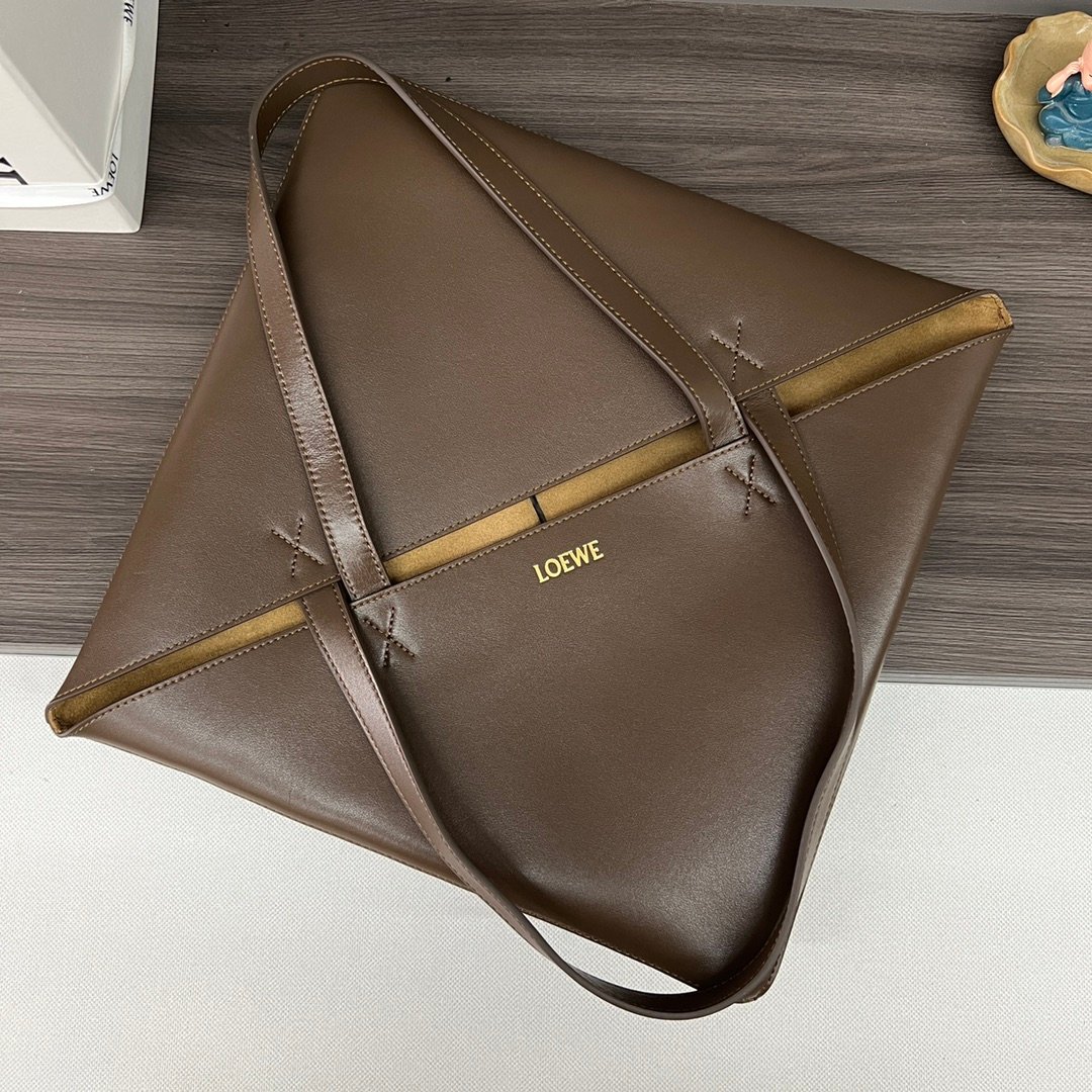 L⊚℮w℮ New 🆕 Large Glossy Cowhide Puzzle Fold Handbag Drawing inspiration from the geometric lines of the brand’s classic handbag collection, the Puzzle Fold Handbag is reinterpreted with geometric and architectural inserts and can be folded completely. A perfect travel companion. The brand uses creative ingenuity to create a soft, lightweight bag with understated elegance using the signature geometric lines of the iconic bag and the L⊚℮w℮ logo. 🉑️ Shoulder or hand carry Suede lining L⊚ ℮w℮Foil stamping.