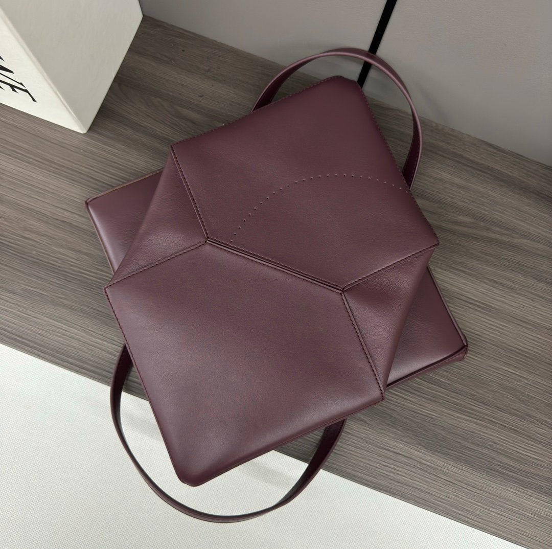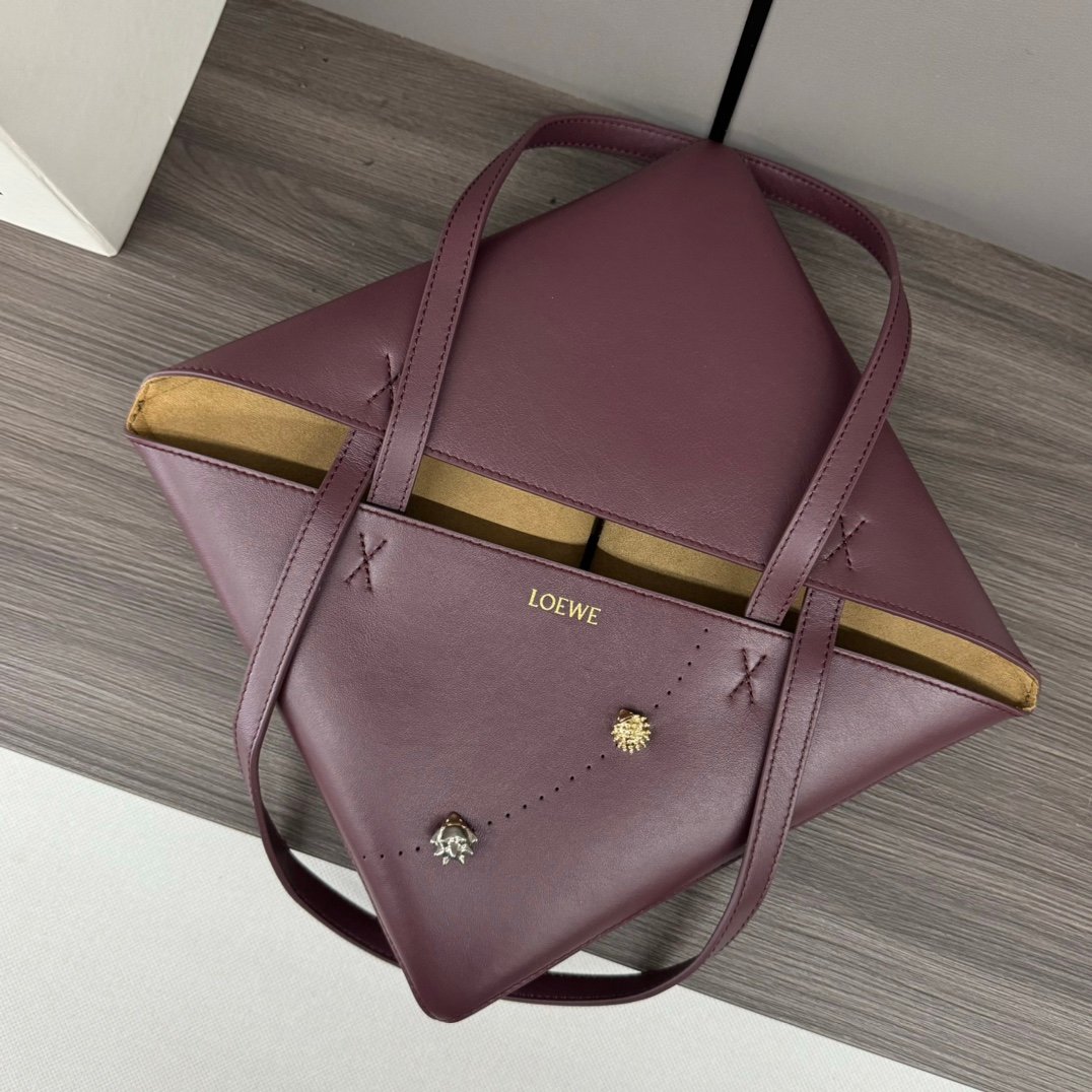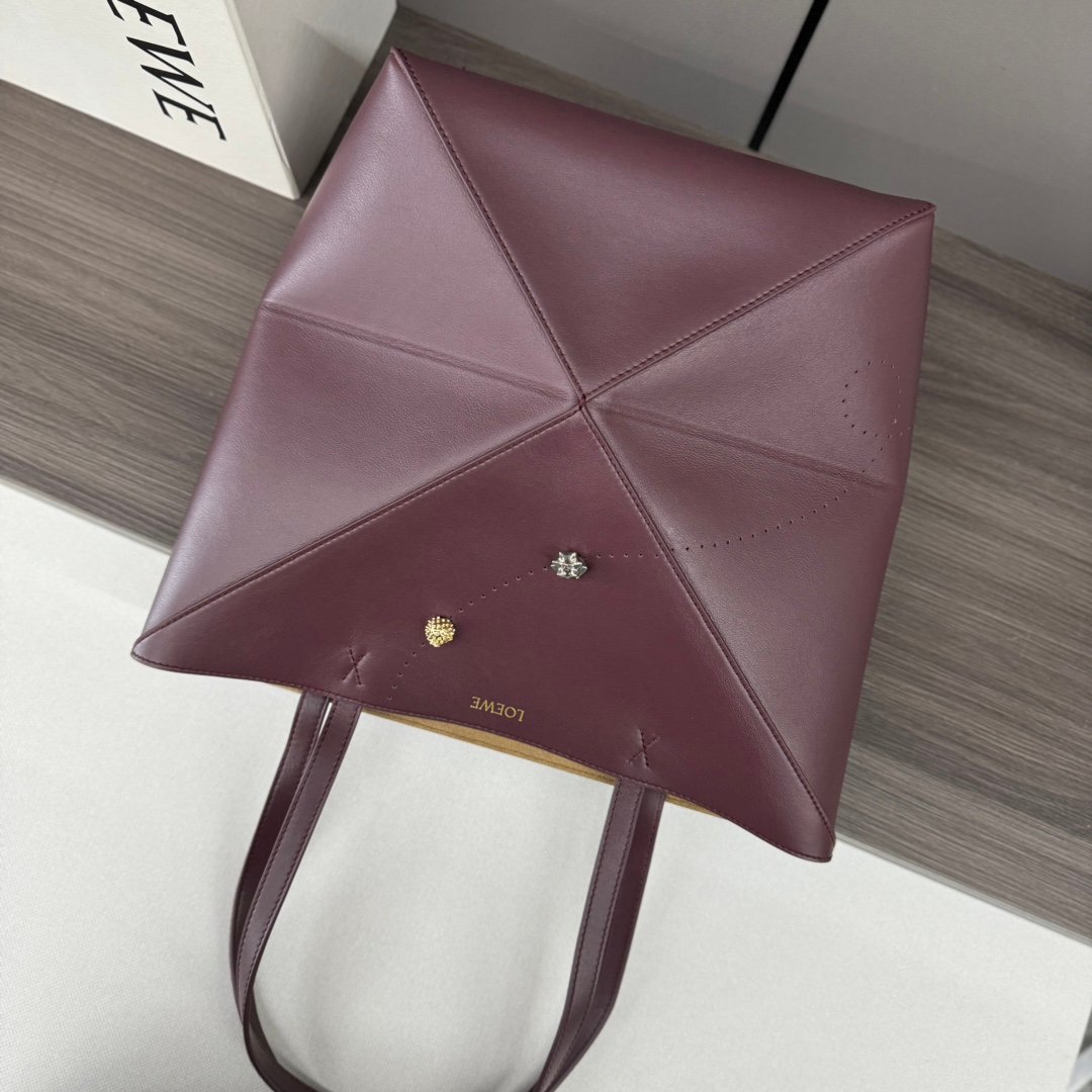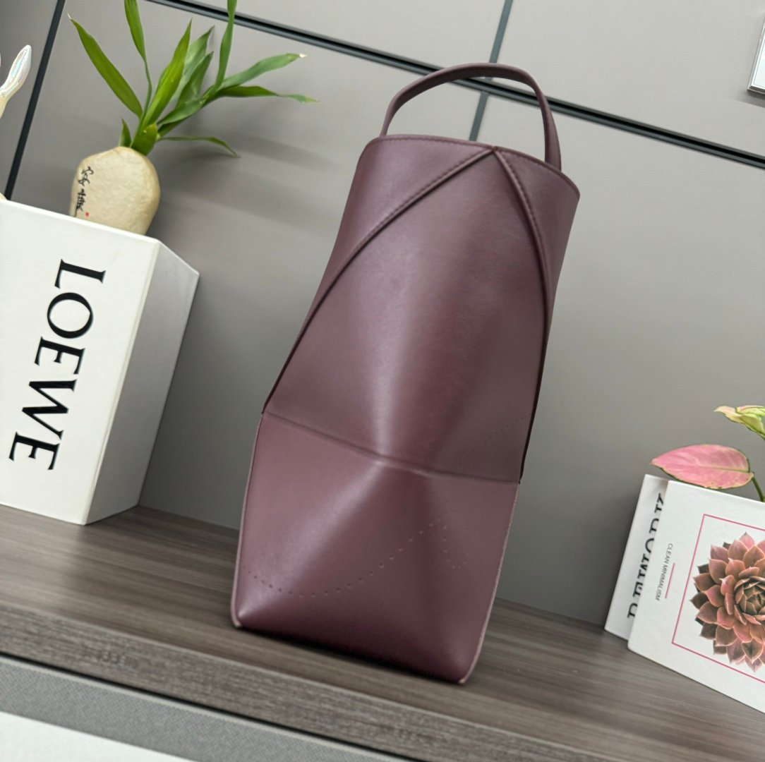 L⊚℮w℮ New 🆕 Small Glossy cowhide Puzzle Fold Tote takes the iconic geometric lines of the iconic bag and reimagines them with graphic and architectural panels Making the bag completely fold flat, it’s adorned with an understated L ⊚℮w℮ branding, 🉑️ shoulder or hand carry Nubuck leather lining L⊚℮w℮ stamping.
