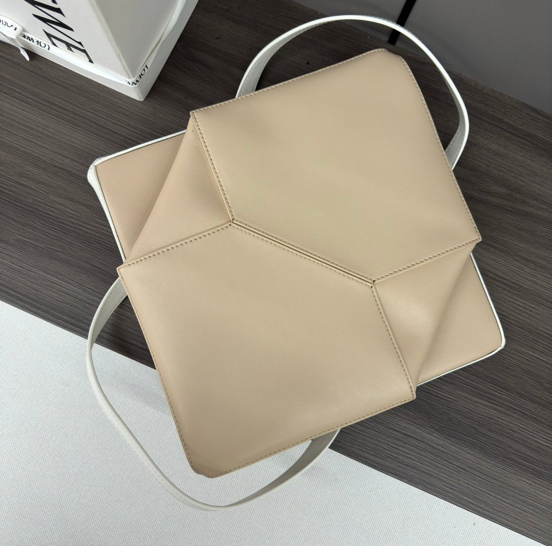L⊚℮w℮ New 🆕 Small Glossy cowhide Puzzle Fold Tote takes the iconic geometric lines of the iconic bag and reimagines them with graphic and architectural panels Making the bag completely fold flat, it's adorned with an understated L ⊚℮w℮ branding, 🉑️ shoulder or hand carry Nubuck leather lining L⊚℮w℮ stamping. nsize:25.5*14.5*31.5CMnModel:052316n
