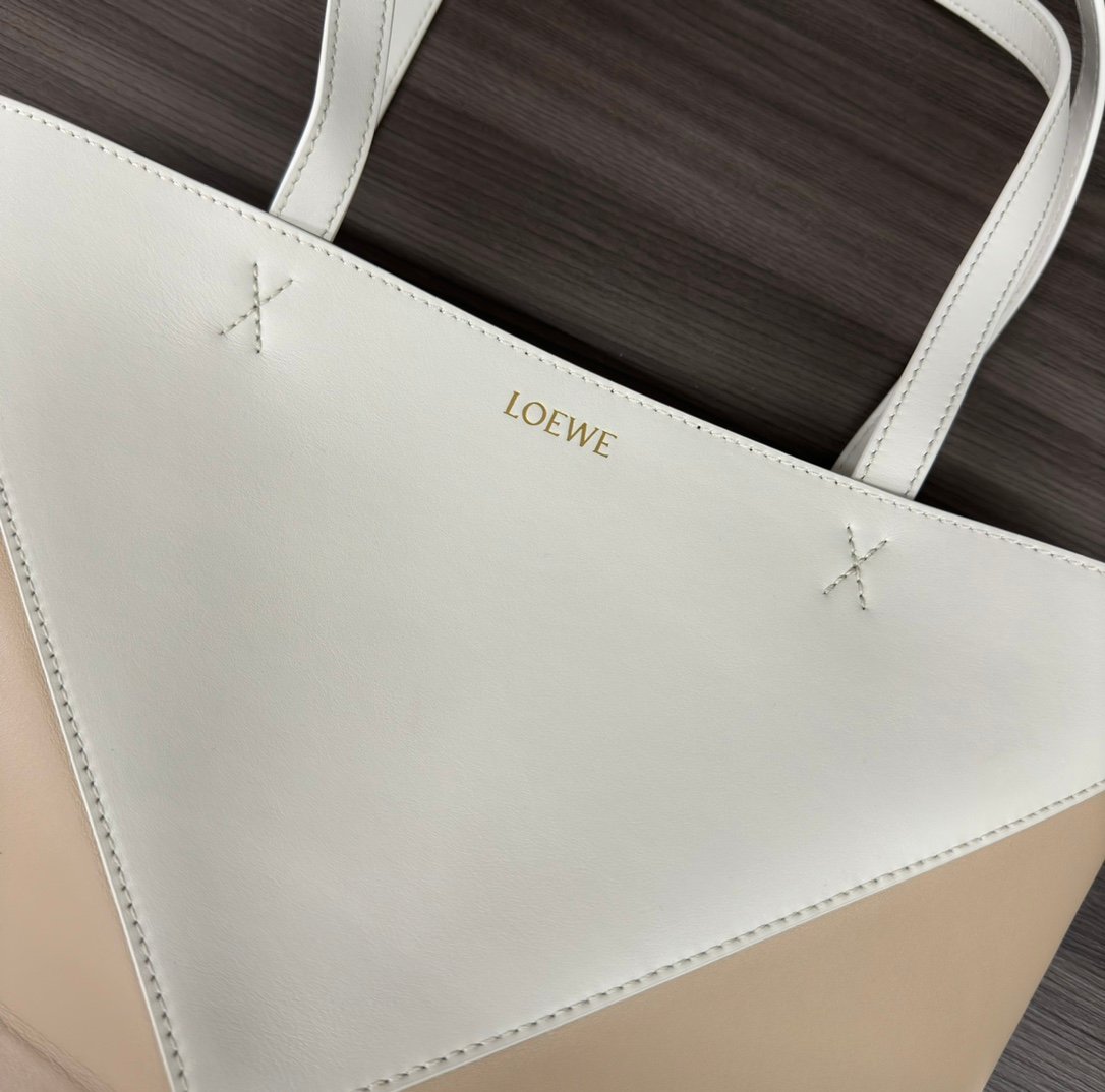 L⊚℮w℮New 🆕Small Colorblocked Glossy Cowhide Puzzle Fold Tote Taking the iconic geometric lines of the iconic bag and reimagining them with graphic and architectural panels Making the bag completely fold flat, it’s adorned with an understated L ⊚℮w℮ branding, 🉑️ shoulder or hand carry Nubuck leather lining L⊚℮w℮ stamping.