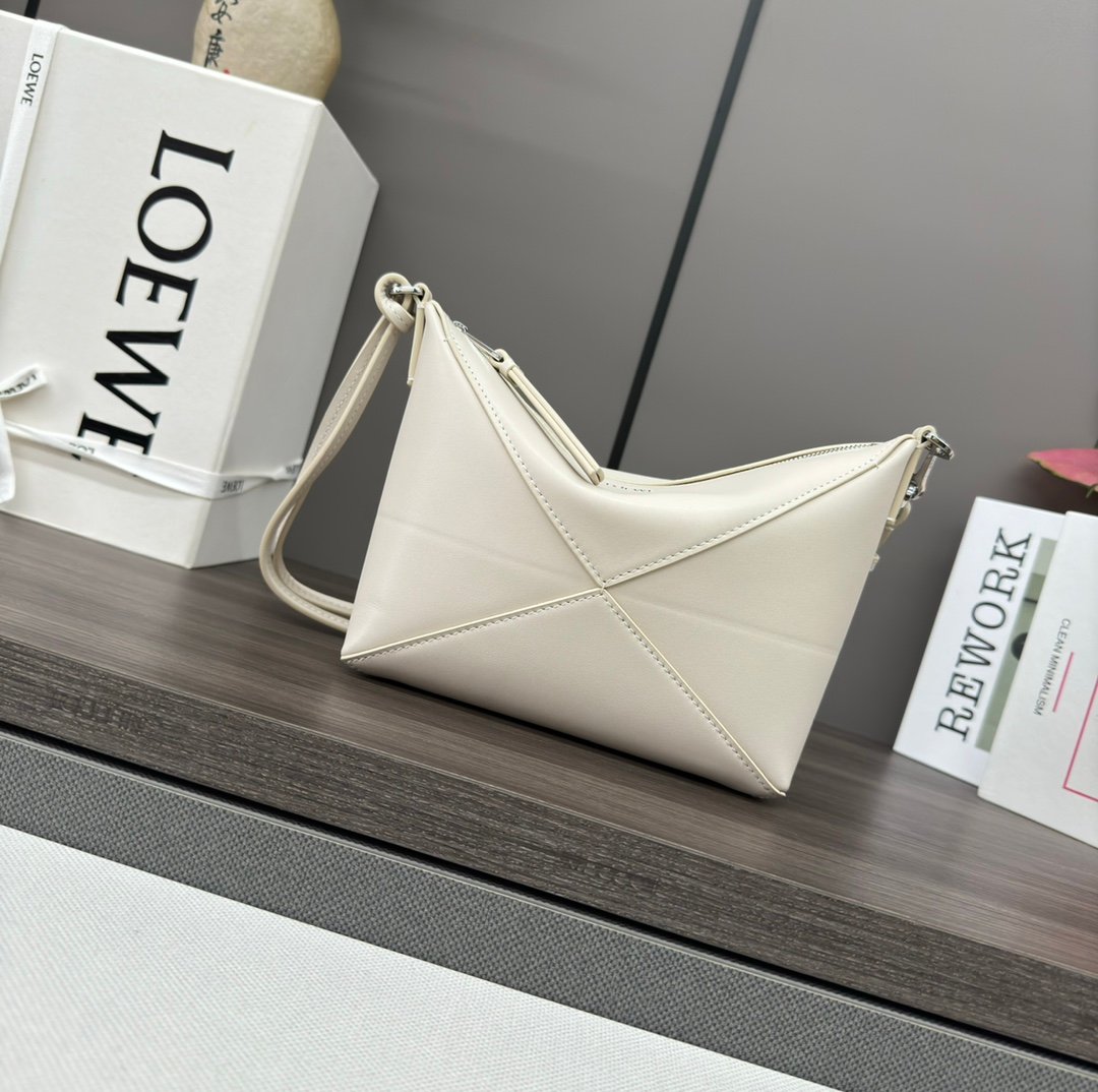L⊚℮w℮’s new 🆕Puzzle Fold pouch is a reinterpretation of the functional clutch, drawing inspiration from the geometric lines of the brand’s classic handbag collection, reinterpreted with geometric and architectural panels. The bag is crafted in glossy nappa leather and can be worn on the shoulder or slung over the shoulder or in the back. Carry it on the shoulder, diagonally or inside another handbag – * detachable and adjustable shoulder strap * zipper closure * suede lining L⊚℮w℮ foil stamping.