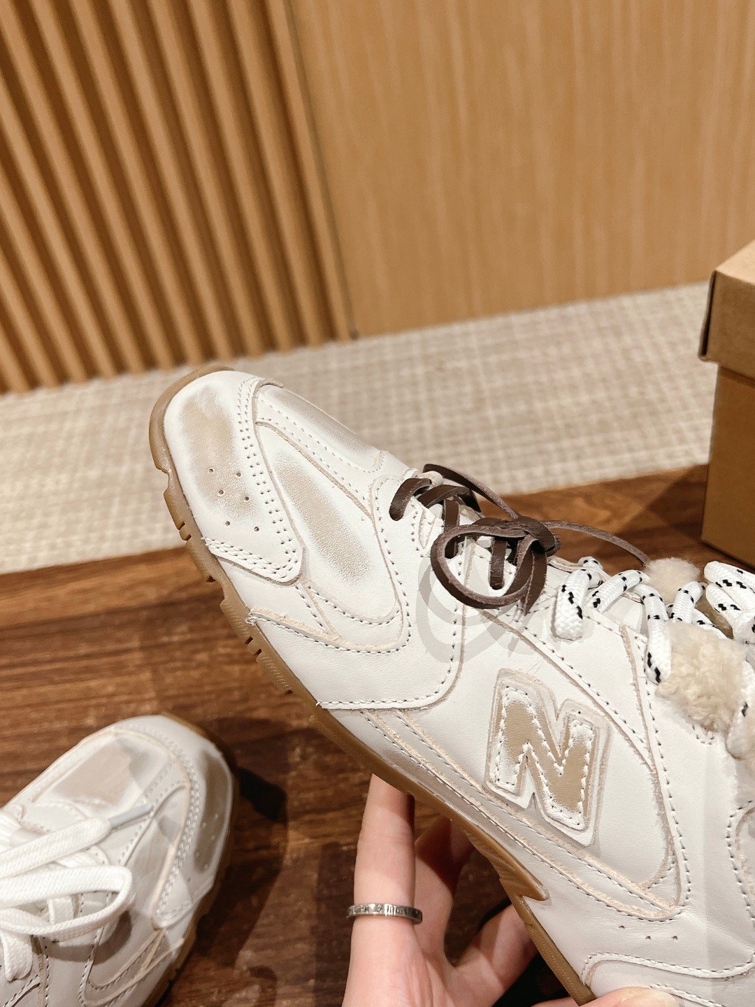 羊羔毛 缪缪意外联动 在SS的秀场上我们看到了Miu Miu与New Balance最新联名版本复古跑鞋系列 nMIU MIU x New Balance推出新作由Miuccia Prada于年创立的二线品牌miunmiu与美国知名品牌New Balance携手推出的新作合作鞋款将在MIU MIU 年春夏系列中亮相nnMIU MIU与 New Balance的合作再度带来全新的独特风格此次合作以经典的MR为基础该款鞋型于年代首次亮相如今被打磨成一款精致的时尚单品采用了具有特色的麂皮鞋面分别以引人注目的米色和棕色展现鞋舌标签上呈现双品牌标志而鞋带则采用了棉质和皮革的双层设计彰显精湛工艺n继Issey Miyake x NewnBalance之后Miu Miux New Balance的定番联名也是继续公布n从细节图来看虽然不是破坏风格但是古铜色和沙色的颜色选择配上特殊材质的使用让它的做旧感别具一格n而另一大设计特色是鞋底New Balance 的运动鞋底被薄底取代nn鞋面以皮革和麂皮拼接打造十分有质感n鞋带采用了最近很流行的双鞋带设计每一双鞋配备三幅鞋带 美拉德配色与皮质鞋面带来不错的质感平底鞋也将是下一季大热趋势有点子期待 Size女码 男码