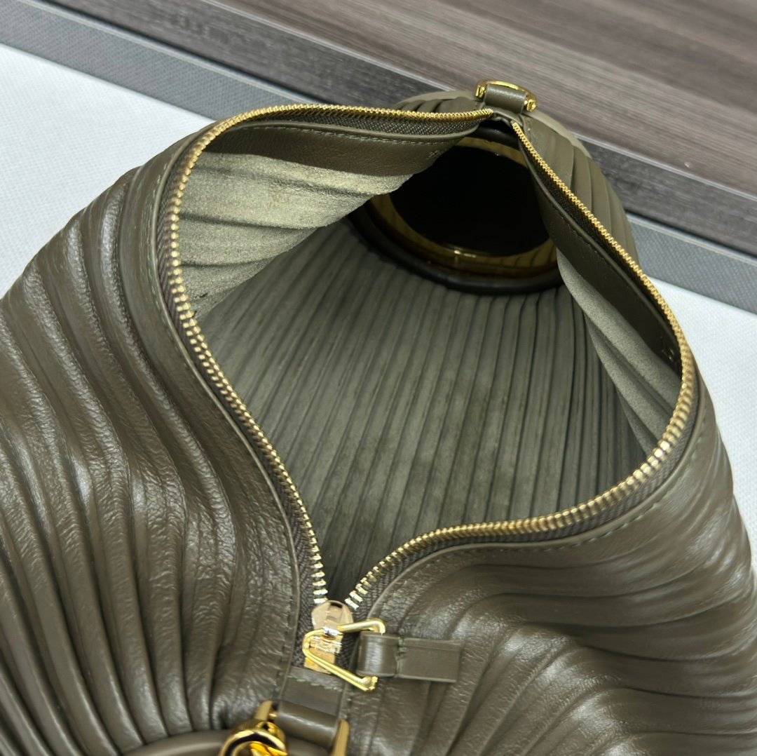 LO℮w℮🌟 Medium🆕 Napa Sheepskin Squeeze Handbag👜 A sophisticated and feminine new handbag made of soft-to-touch Napa leather. A masterpiece of traditional craftsmanship, innovative research and unique design, this smooth handcraft features a surprisingly lightweight pleated body, adjustable donut chain and soft-to-touch carry handles. This medium version is crafted in Napa sheep leather.*Can be worn over the shoulder, crossbody or handheld*Adjustable chain shoulder strap with Anagram carry-engraved pebbles, additional chain for further extension of the shoulder strap*Magnetic snap closure*Interior zipper pocket*Unlined*lo*ewe stamped in gold or silver. nSize: 34*13.5*33CMnModel: 652328 All Steel Hardwaren