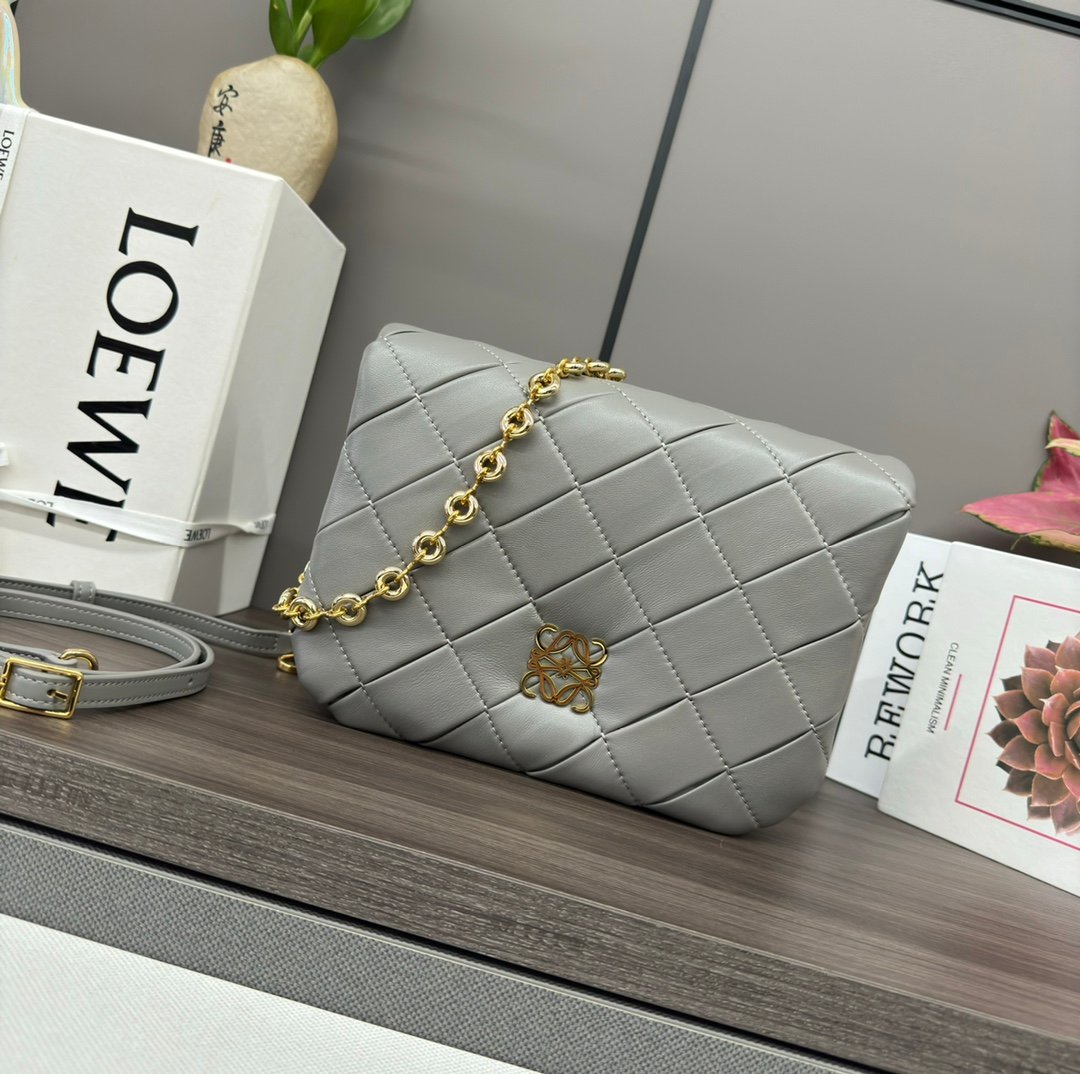 LO℮w℮🌟 Repeat Pleated Shiny Napa Sheep Leather Puffer Goya Handbag Inspired by the Goya aesthetic, the Puffer Goya Handbag brings a new sensory and tactile dimension through the shiny napa sheep leather with goose feather padding. Fitted with a detachable and adjustable metal donut chain and a detachable leather strap. This version is made from pleated sheep leather that has been cut, sewn and hand woven. Carry it on your shoulder or in your hand*Magnetic closure*This bag comes with a detachable chain and a leather strapOne main compartment, one zippered pocket and one slit pocket *Nappa sheepskin leather lining