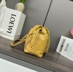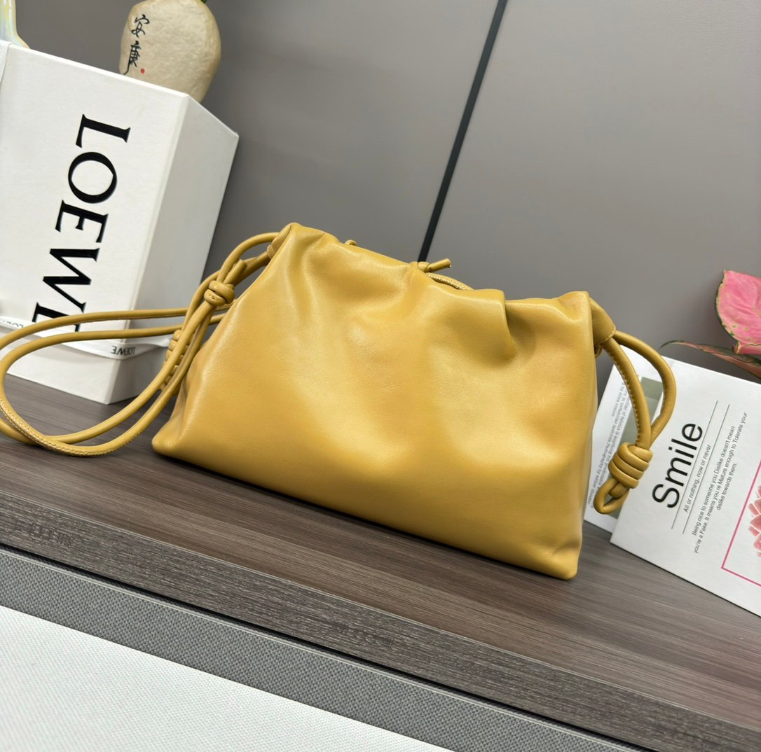 LO℮w℮🌟 Soft Napa Sheep Leather Flamenco Purse bag features a pleated design with key details such as a signature knot on the side. Versatile and stylish, it can be carried as a clutch, over the shoulder with a donut chain or across the body with a leather shoulder strap. This version is crafted from supple nappa leather. Can be worn over the shoulder, crossbody or handheld*Removable and adjustable leather shoulder strap*Removable donut chain trim*Anagram-engraved pebble pattern*Low-profile magnetic snap closure*Suede lining in hot-stamped gold or hot-stamped silver*(with matching metal chain and extended leather shoulder strap)