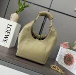 Loewe🌟 Soft Cowhide Leather Compact Hammock Handbag (New Size)n New Version🆕 Hammock Bag A versatile handbag with a soft side body that releases the sides to change its shape *This new compact version is made of soft cowhide leather *🆕 Carry it over the shoulder, crossbody, by hand, or by the top carry handle *Detachable Adjustable shoulder strap* Interior hook-and-loop closure *Two interior slit pockets*Can be customized with a shoulder strap and personalized charm *One exterior zippered pocket *With Anagram herringbone cotton sail lining. n size: 20*19*14n Model: 652235n