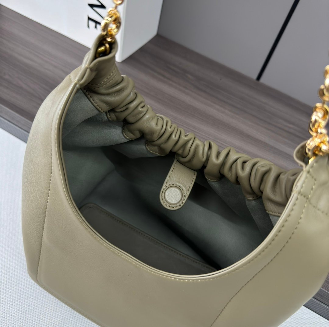 LO℮w℮🌟Small🆕Napa Sheepskin Squeeze Handbag👜A sophisticated and feminine new handbag made of soft-to-touch Napa leather. A masterpiece of traditional craftsmanship, innovative research and unique design, this smooth handcraft features a surprisingly lightweight pleated body, adjustable donut chain and soft-to-touch carry handles. This smaller version is crafted in Napa sheep leather.*Can be worn over the shoulder, crossbody or handheld*Adjustable chain shoulder strap with Anagram carry-engraved pebbles, additional extra chain to further extend the shoulder strap*Magnetic snap closure*Interior zippered pocket*Unlined*lo*ewe stamped in gold or silver. nsize:29*10.5*24CMnModel:652329 All Steel Hardwaren