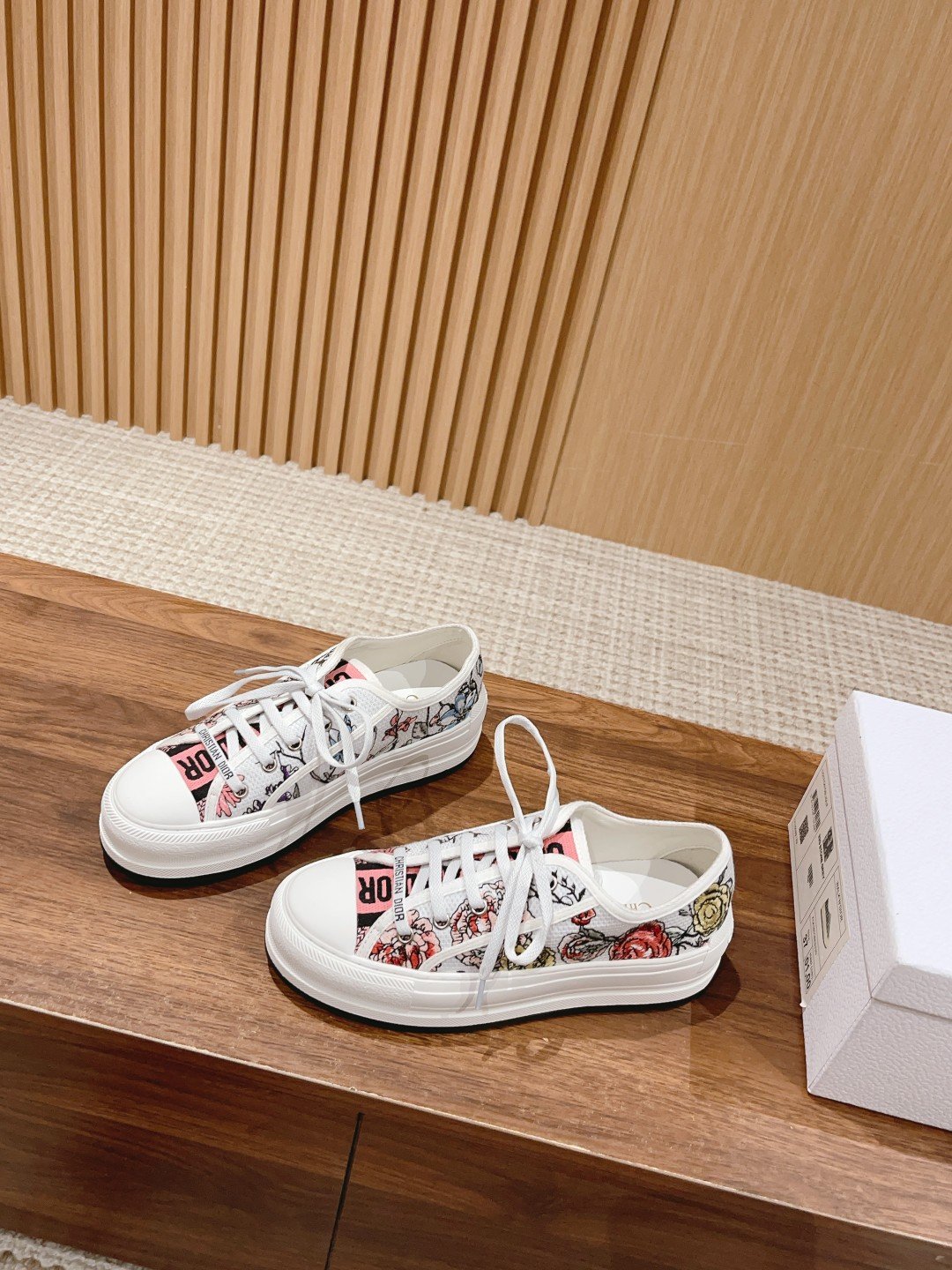 #Low Top ๐‚๐‡๐‘๐ˆ๐’๐“๐ˆ๐€๐ ๐ƒ๐ˆ๐Ž๐‘ Dior ๐–๐š๐ฅ๐ค’๐ง# Collection Old Flower Embroidery Thick Sole Canvas Shoes Casual Sneakers The Walk’n’Dior chunky sneaker is a stylish piece that elevates the collection Oblique printed cotton embroidered upper with a comfortable chunky sole, tongue and Christian Dior Paris logo laces adds a chic touch to any casual look Original Custom Imported Oblique Printed Embroidered Fabric Imported Soft Sheepskin Lining Lining Exclusive molded TPU outsole 4.5CM Size: Women’s 35-40 (40 customized non-returnable)