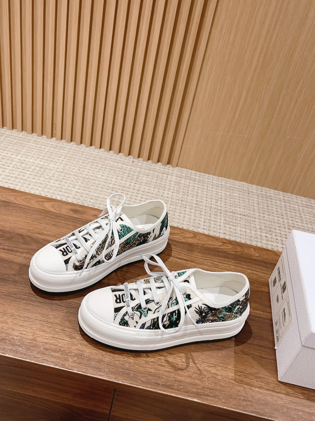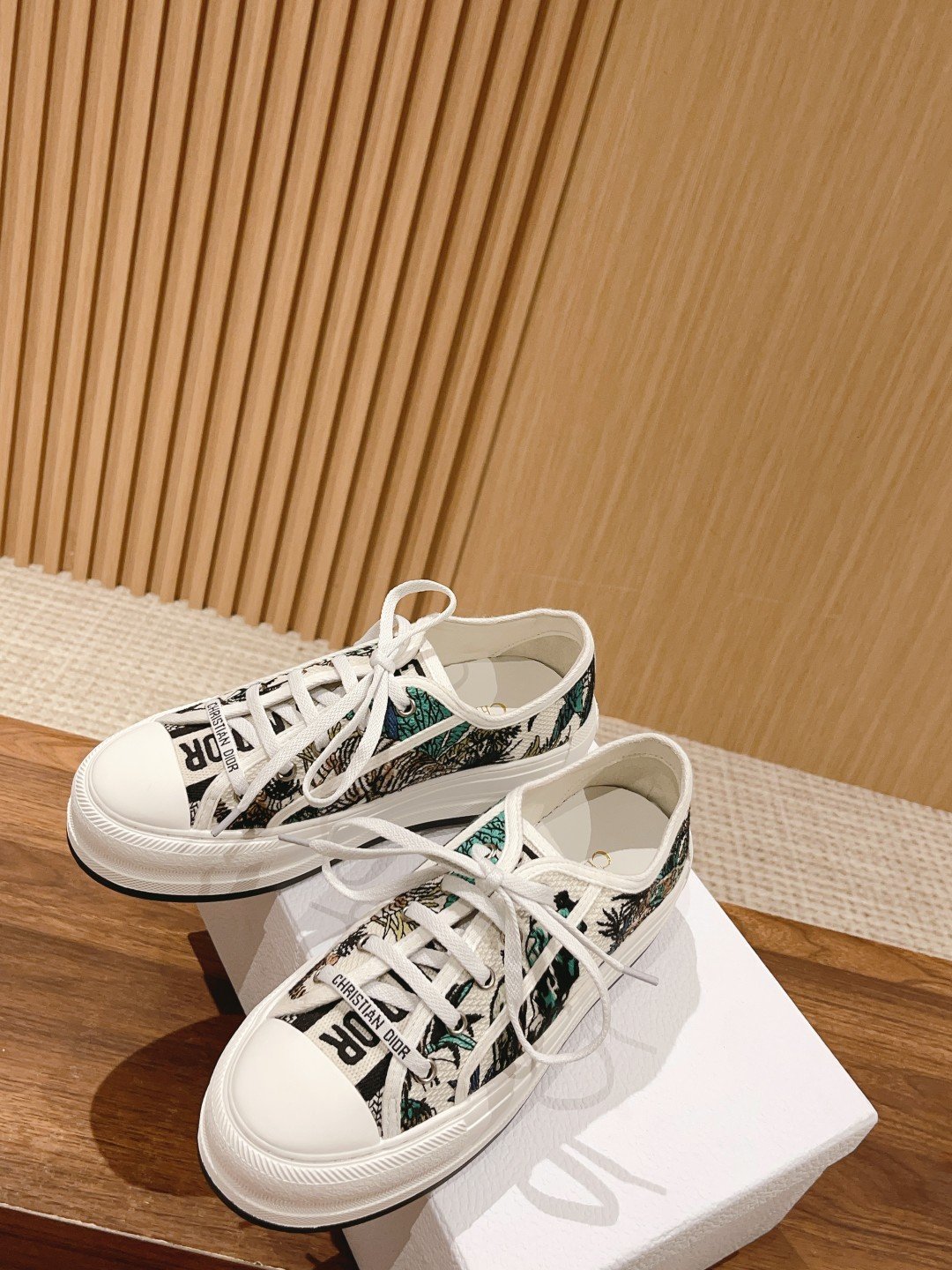 #Low Top ๐‚๐‡๐‘๐ˆ๐’๐“๐ˆ๐€๐ ๐ƒ๐ˆ๐Ž๐‘ Dior ๐–๐š๐ฅ๐ค’๐ง# Collection Old Flower Embroidery Thick Sole Canvas Shoes Casual Sneakers The Walk’n’Dior chunky sneaker is a stylish piece that elevates the collection Oblique printed cotton embroidered upper with a comfortable chunky sole, tongue and Christian Dior Paris logo laces adds a chic touch to any casual look Original Custom Imported Oblique Printed Embroidered Fabric Imported Soft Sheepskin Lining Lining Exclusive molded TPU outsole 4.5CM Size: Women’s 35-40 (40 customized non-returnable)