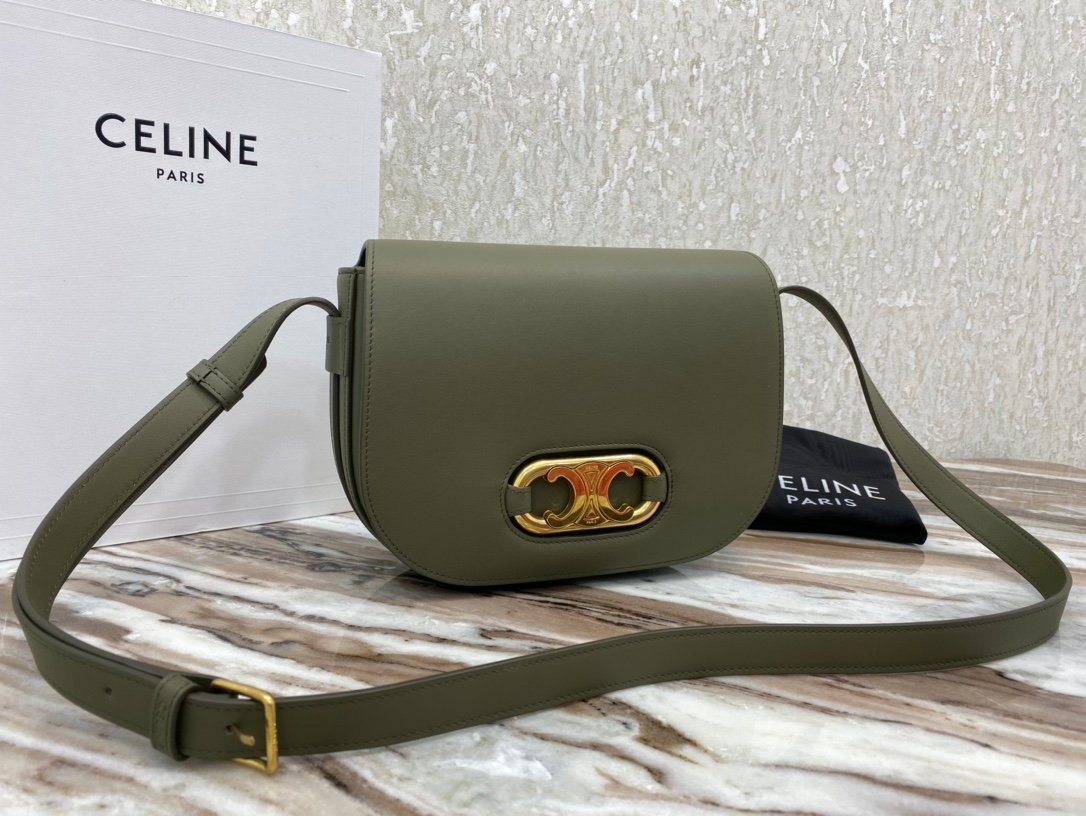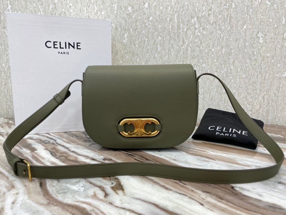 Home BAGS CELINE MAILLON TRIOMPHE MEDIUM SATIN CALF LEATHER HANDBAGn9 X 7 X 2 INCHES (23 X 19 X 6 cm)n100% calfskin leathern100% lambskin leather liningnCrossbody and shouldernMagnetic closure nInterior flat pocketsnAdjustable leather straps 20 INCHES (50 cm)nNo.: 193123CK7.38OZP880
