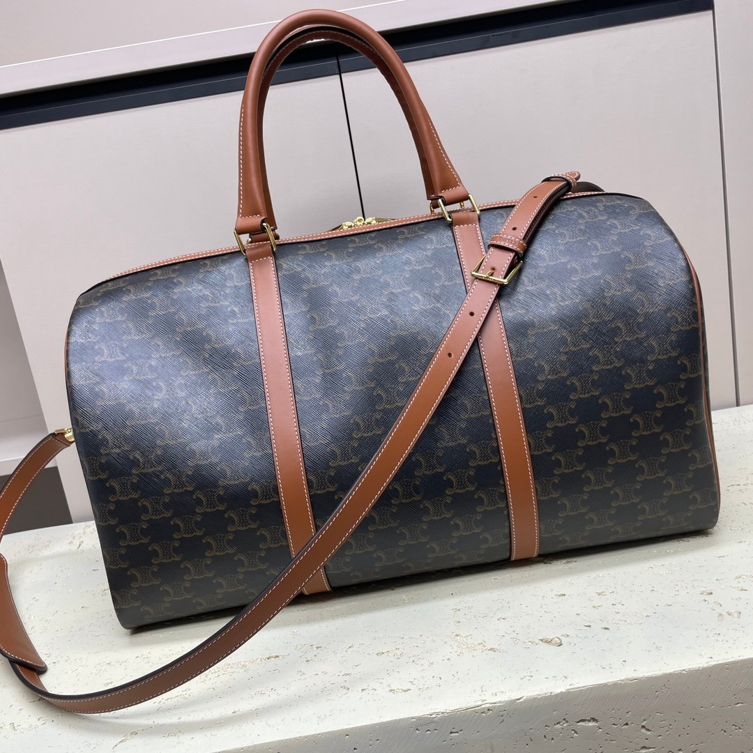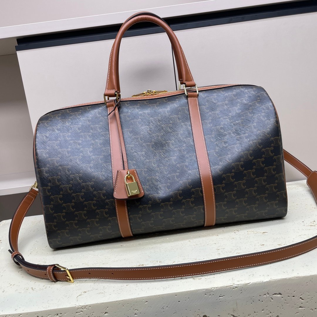 Medium Logo Printed Cowhide Leather Travel Bag 🧳
