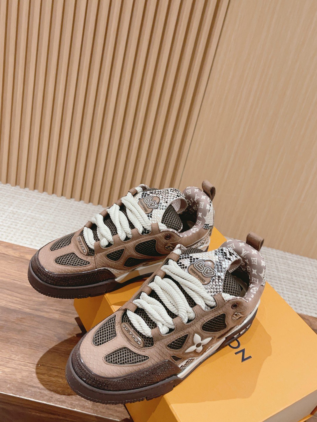#Men’s Only 𝐋𝐨𝐮𝐢𝐬 𝐕𝐮𝐢𝐭 𝐭𝐨𝐧 𝐒𝐤𝐚𝐭𝐞# Previously revealed at the LV show, the face of this The shoe and bag model SK8 has recently been confirmed to be sold in early spring 2023, and is considered Virgil Abloh’s design legacy for LV’s shoe collection. The upper upper is made of leather with LV’s classic floral logo, and the overall shape of the shoe is exaggeratedly open. The upper is made of leather with LV’s classic floral logo, and the overall shape of the shoe is exaggerated and flattened, continuing the thick, wide and flat lines of the 90s. The lines of the shoe, together with the rough laces and the iconic Monogram pattern, are ancient and fashionable ❤n comparison with the previous Compared to the previous mature models, this shoe is still the same as the trainer style. The trainer has a lot of details at the joints, and it takes a lot of time to make them! n original breathable mesh fabric stereoscopic sculpture soft film splicing small joints cowhide, sense of texture color tone comfort appropriate All of them are very durable, high elastic latex cushion inside, the surface layer is combined with high mercerized cowhide Mesh, TPU material rubber sole, high-color rest value leisure sports shoes small leather cow and mesh into the Colorful details, Monogram flowers point out the design theme, on the foot both comfortable and n trend sense full! Size: 39-45M