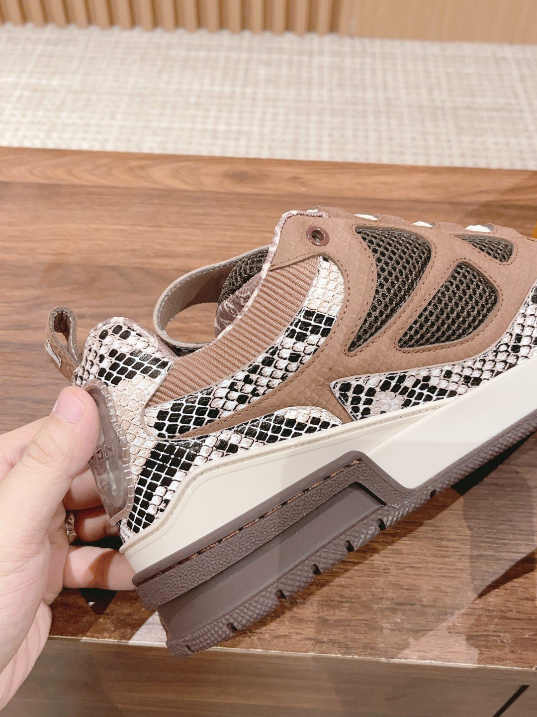 限男款 之前在LV大秀曝光的这款面鞋包型SK8最近确将认于年早春售发算是 Virgil Abloh给LV的鞋款系列下留的设计遗产鞋上帮以皮打革造了LV经典的花卉志标鞋型整体为夸的张面包形态延续了年代厚宽扁平的型鞋线条配搭粗制鞋带以及志标性的 Monogram 图纹古复又时髦n相比于之前类似那的些成熟范儿动运款式说来这款底鞋依旧是trainer同款拼小接处很多细节起做来着实费费时料n原厂透网气织物立体雕刻软胶片拼小接牛皮感质色调舒度适都很耐思内里高弹乳鞋胶垫表层合复高丝光奶牛网布TPU材质橡鞋胶底高颜休值闲运动鞋小皮牛和网布融入纷缤细节Monogram花卉点明计设主旨上脚既服舒又n潮流感满满SizeM