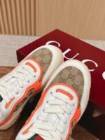 #Men’s Sizes Only [Orange Old Fashioned] ๐๐ฎ๐๐๐ข ๐๐-๐๐ ๐ As Sabato De Sarno’s first sneaker for Gucci, the Re-Web collection reinterprets the brand’s classic stripes with bold, irreverent detailing against a modern silhouette crafted in white leather, the new sneakers are embellished with a number of the brand’s iconic details and a bright red and green lace-up tongue, making them an instant favorite. The white leather has been specially treated to be soft and supple, with an embossed grained texture