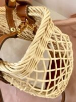 Miu summer rustic resort style weaving hollow vegetable basket finally came! Special rattan arc design makes the bag type is very novel and chic and three-dimensional shape, this bamboo weaving can be the masters tossed to see the bamboo weaving are afraid of it 😂 really complexity is super high, the loss is also very large, but as the so-called slow work out of the work, to see the physical object is to spend so long is worth it! The bag inside with canvas zipper pouch, with adjustable leather long shoulder strap, out of the picnic idyllic vacation, seaside play are excellent choice! I have already brainstormed more than one outfit to go on vacation! 🏖️