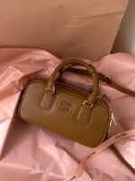 MIUMIU bowling bag small brown large goods real shot | spot to about it 🈶 n this super absolute, must recommend to you! Classic atmospheric bowling bag shape design to add a touch of handsome overall, and NIUNIU consistent girl’s image of the contrast, embossed LOGO without excessive decorative embellishments, low-key image of more good sense ~ can be commuting to the daily life can also be travel, both to meet the capacity and to meet the fashion, each major fashion heroes almost manually a Oh! In addition to the wristband is also equipped with adjustable and removable shoulder strap, shoulder crossbody is also proper, on the body is both good-looking and stylish, any occasion can hold! n1420532095(22×10.5×7.5cm)n