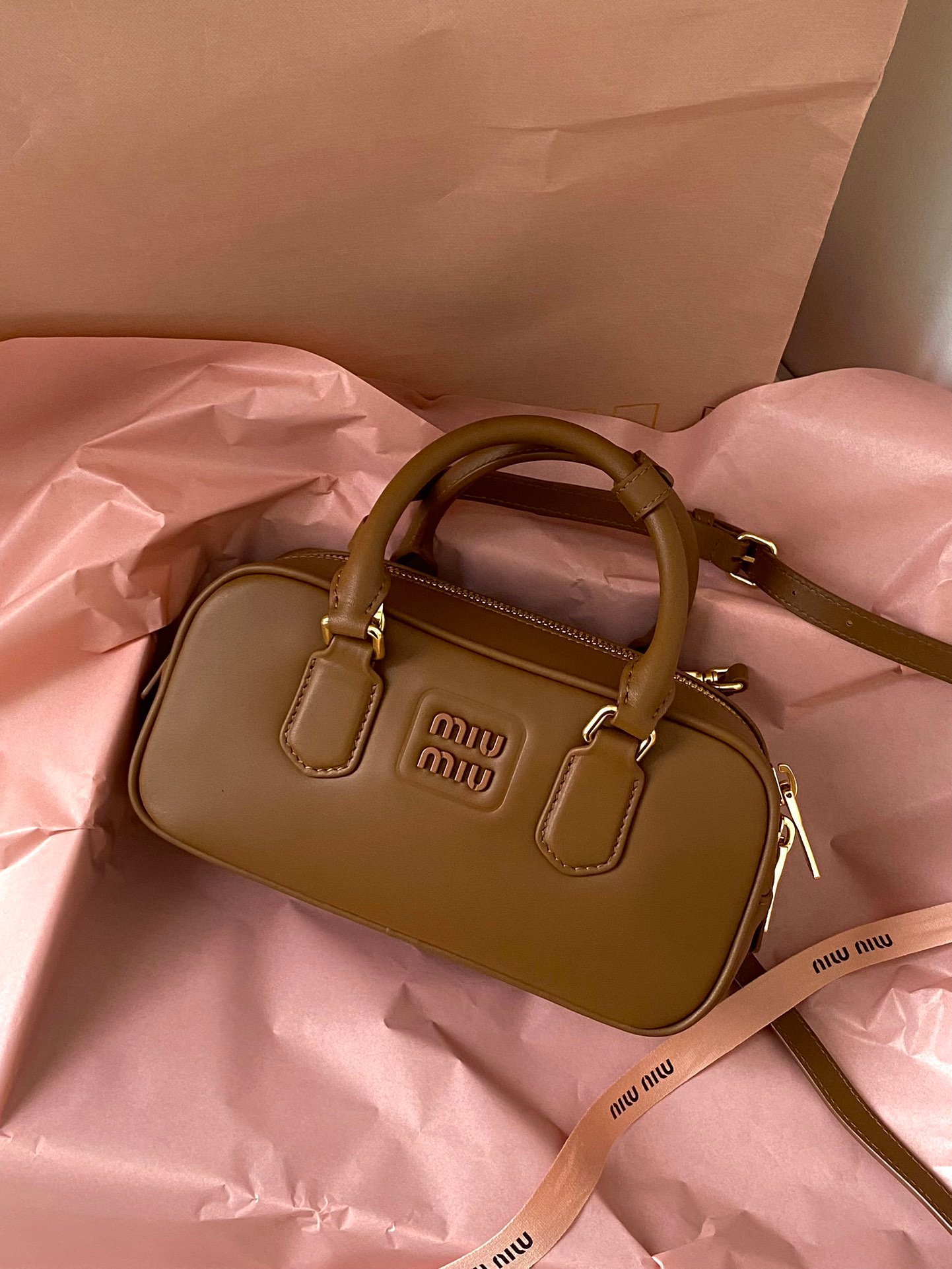 MIUMIU bowling bag small brown large goods real shot | spot to about it 🈶