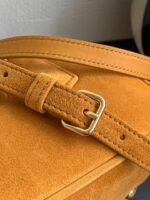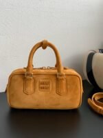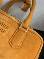 MIUMIU bowling bag small deerskin pumpkin yellow spot to the appointment 🈶n this fall and winter models deerskin bowling bag is superb, must recommend to you! Classic atmospheric bowling bag shape design to add a touch of handsome overall, and NIUNIU consistent girl’s image of the contrast, embossed LOGO without excessive decorative embellishments, low-key image of more good sense ~ can be commuting to daily life can also be travel, both to meet the capacity and to meet the fashion, each major fashion heroes almost manually a Oh! In addition to the wristband is also equipped with adjustable and removable shoulder strap, shoulder crossbody is also proper, on the body is both good-looking and stylish, any occasion can hold! n1420532095(22×10.5×7.5cm)n