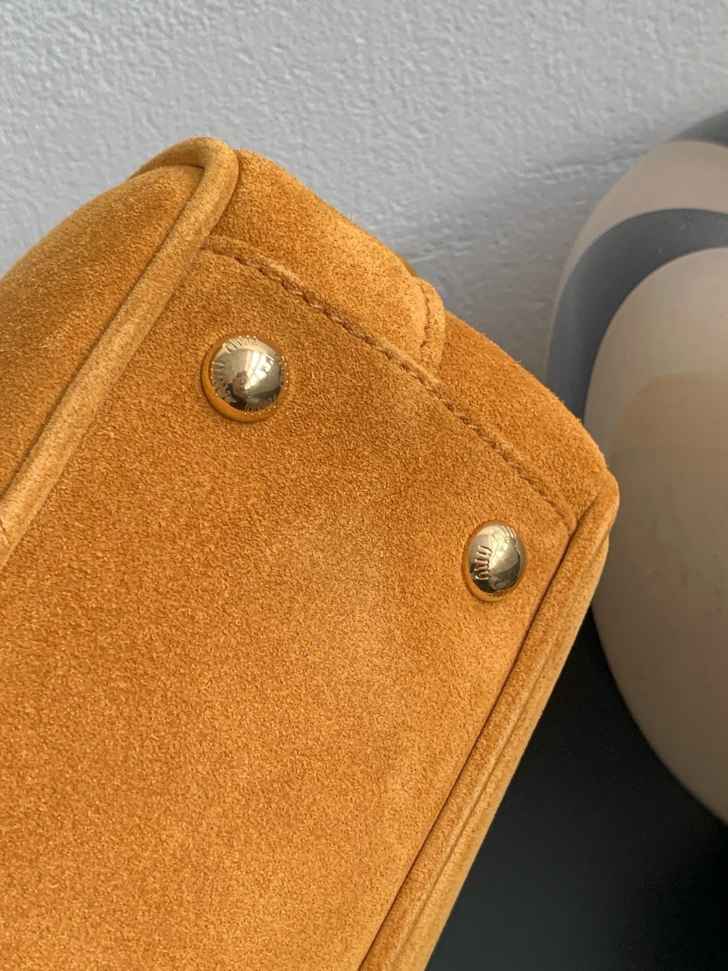 MIUMIU bowling bag small deerskin pumpkin yellow spot to the appointment 🈶
