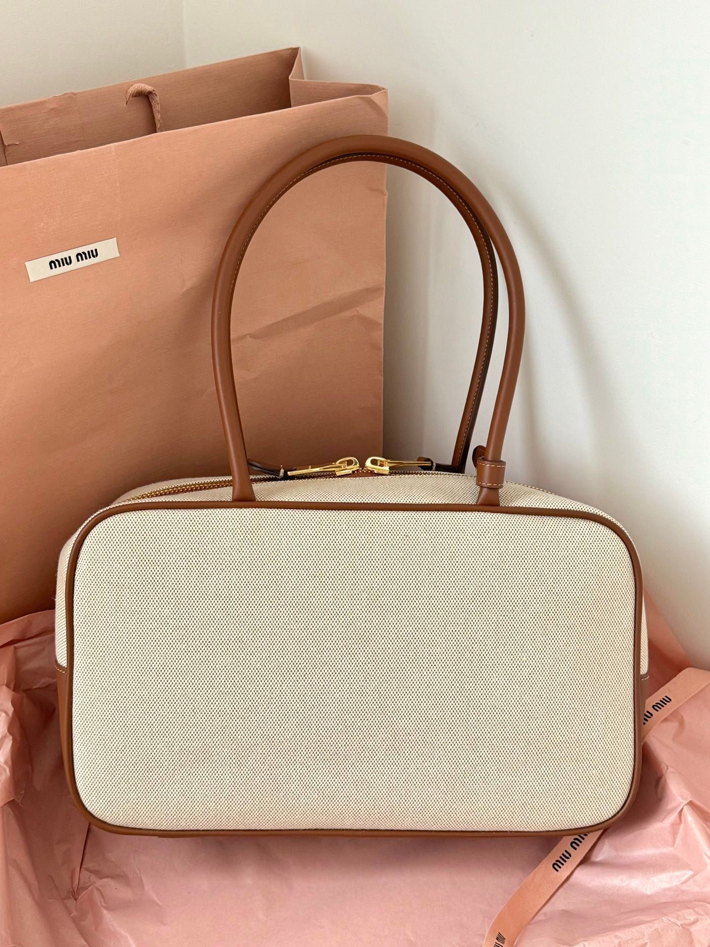 MIUMIU Canvas Patchwork Leather Briefcase big goods real shot | spot to about 🈶