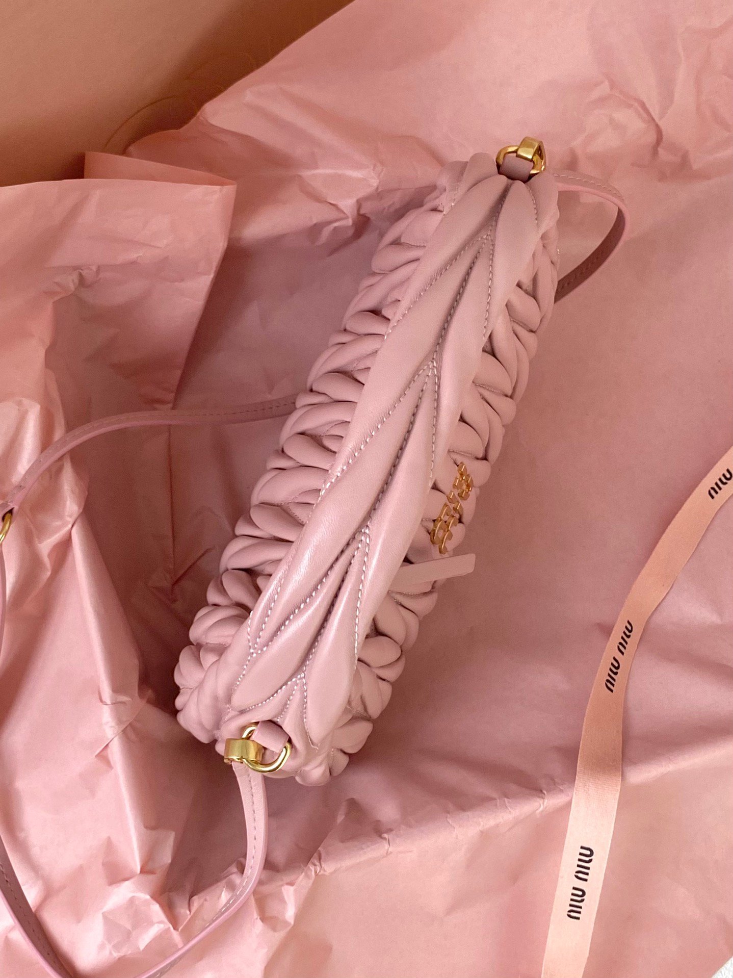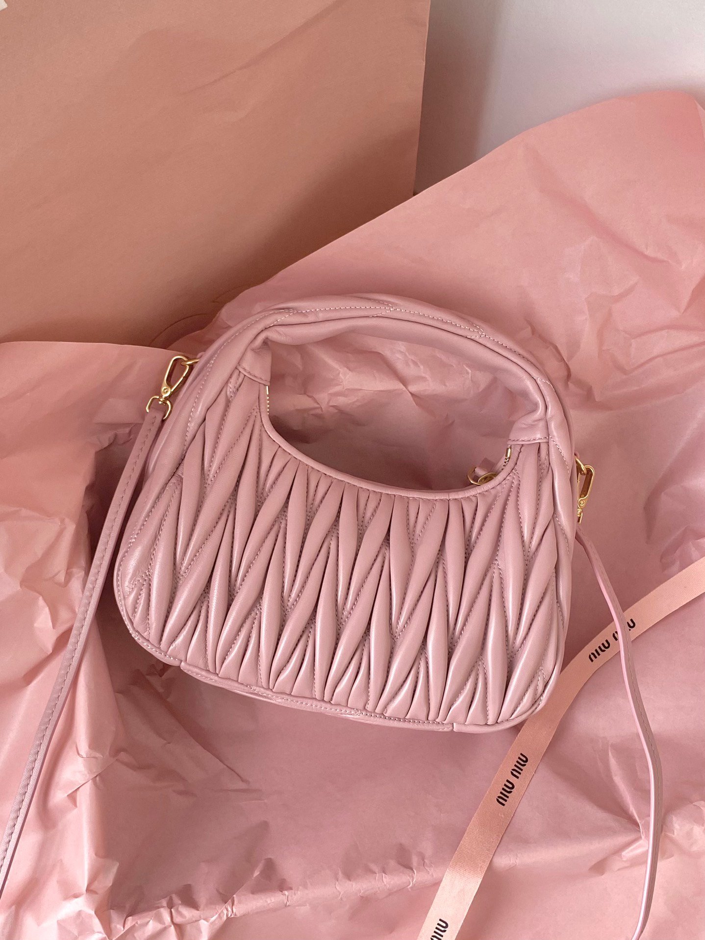 MIUMIU HOBO light pink small large stock real shot