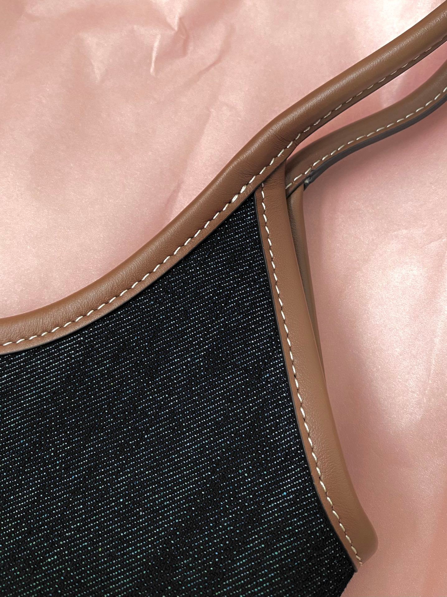 MIUMIU IIVY TOTE denim with brown large goods real shot n this Tote bag IVY, I would like to call it the most suitable for the NIUNIU girl in the same models of Zhang Yuanying a one! This look simple bag type, the appearance of no complicated decorations, the entire bag using canvas collocation leather, how to match are very versatile ~ classic natural colors, both texture and good with, back on the body has a kind of MIU system girl’s sense of literature! The capacity of the bag can not be small, loaded with 13-inch laptop, self-weight is also very light, if you want to buy a home is not only a specific occasion to carry, but daily will often carry the bag, IVY is really a best choice! n5660532078 (35×40cm)n