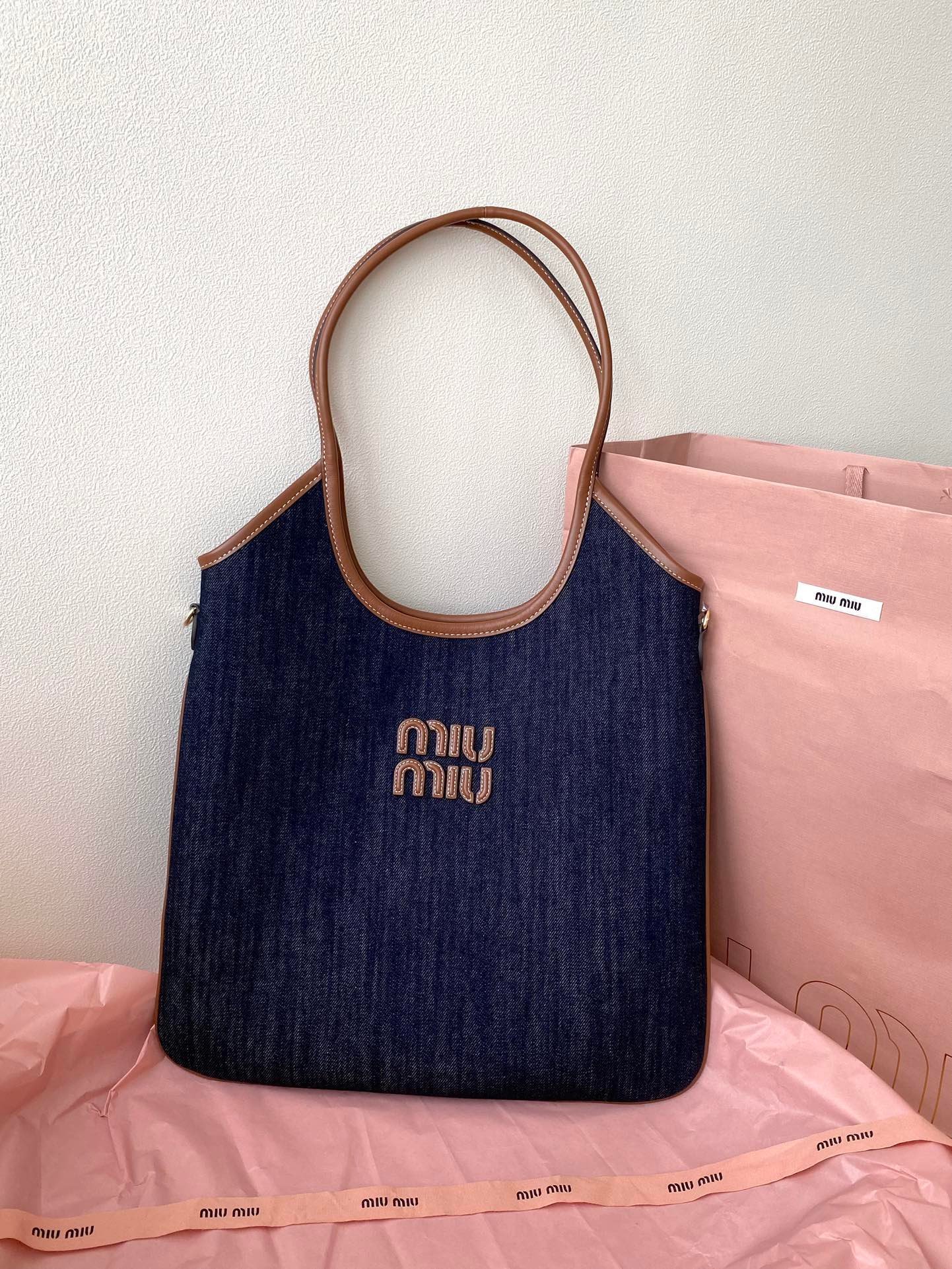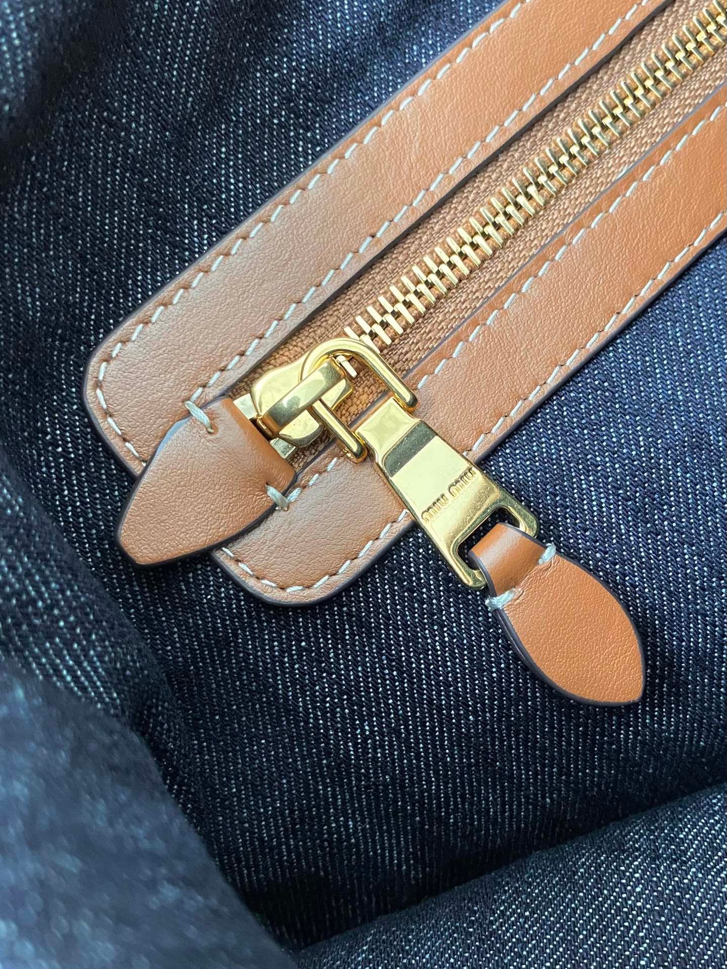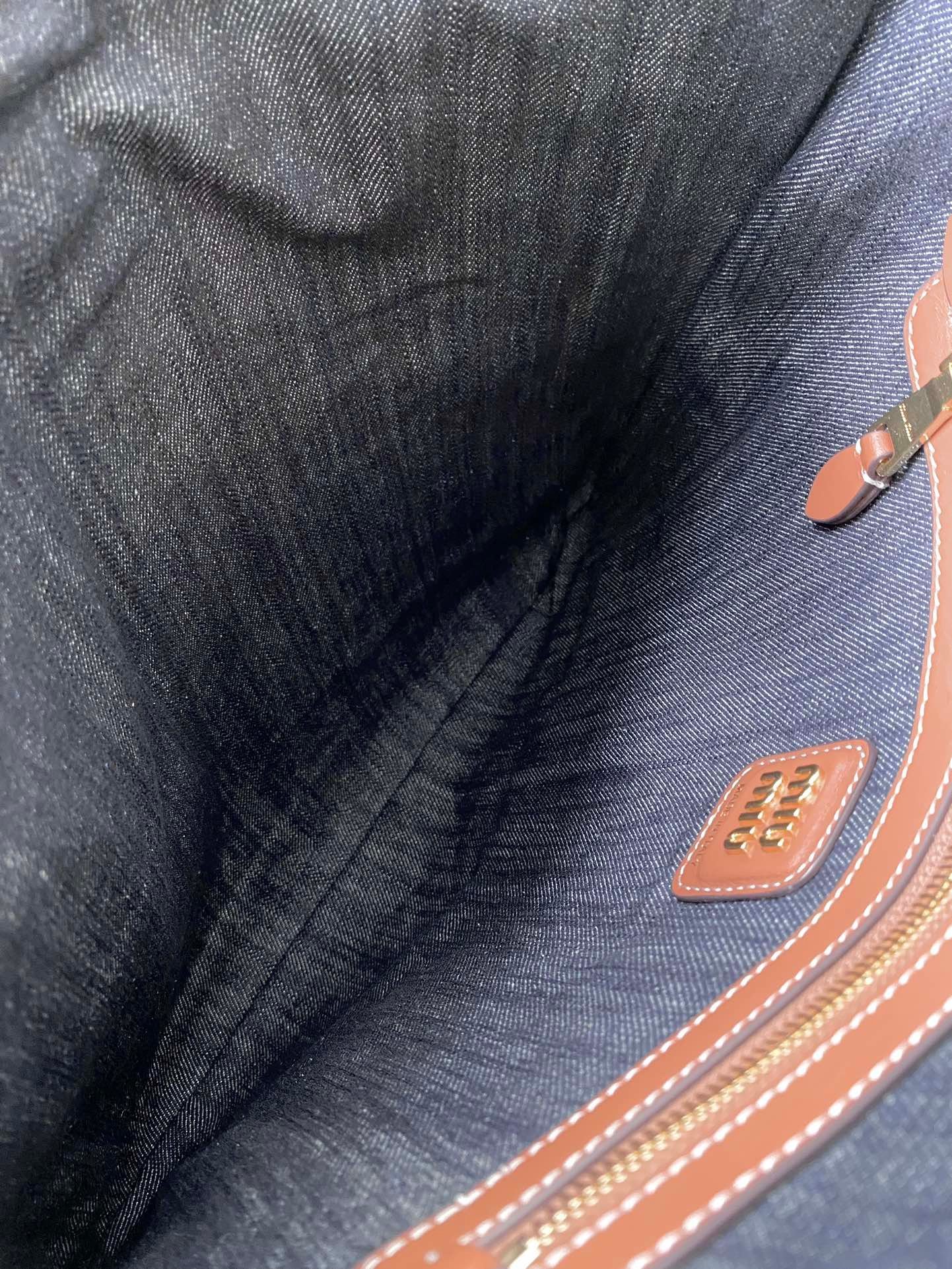 MIUMIU IIVY TOTE denim with brown large goods real shot