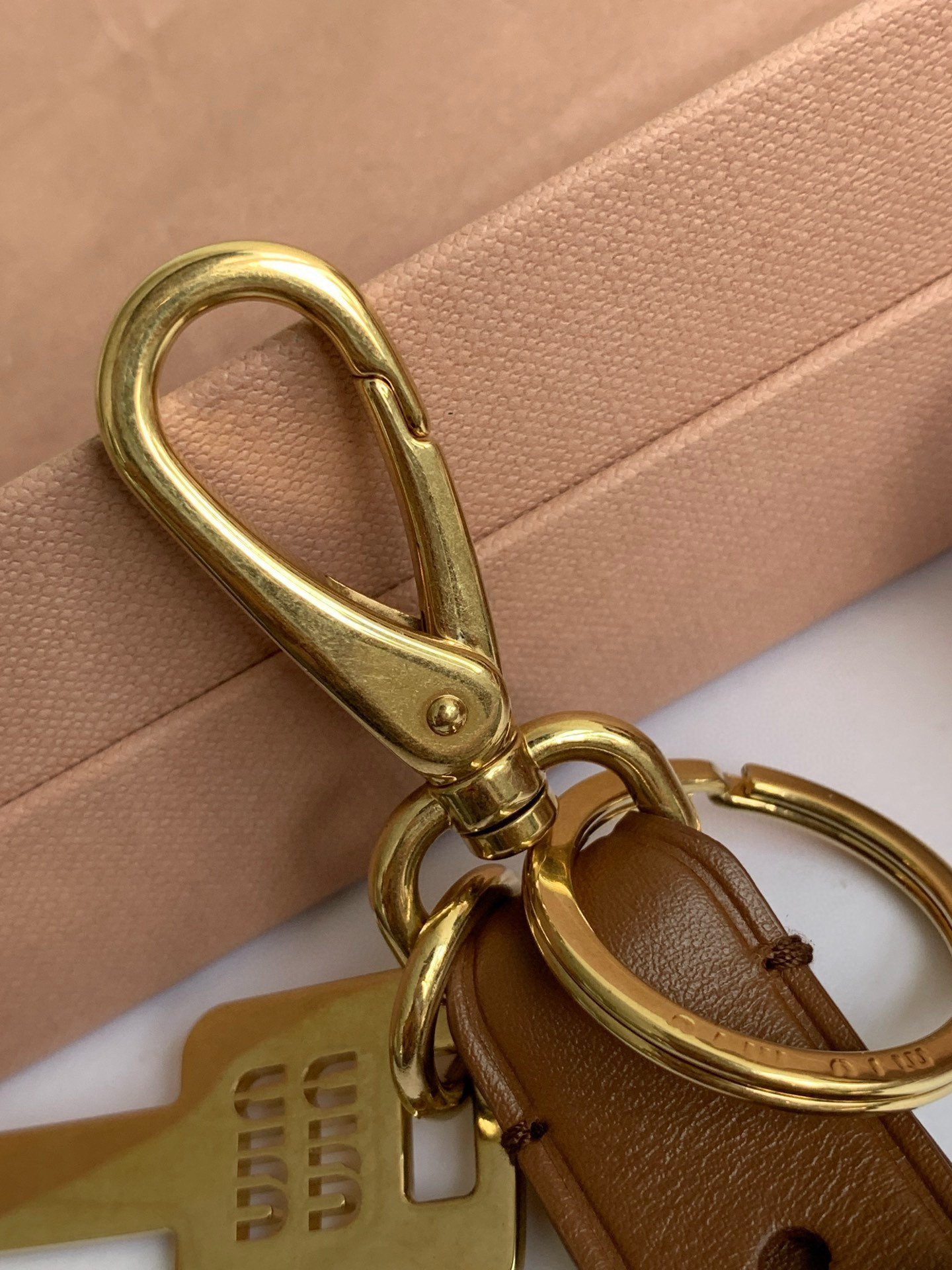 MIUMIU keychain brown 🉑 take booking la n this keychain NIUNIU locked in my heart la! The real thing is really good-looking and exquisite, even if it is an ordinary bag hanging it, can immediately let the bag the whole senior up ~ and can be used to decorate the bag and can be used as a keychain, but also with clothes Oh! This is an all-purpose collocation buckle, must be rushed, into the hands of can not let you regret! n0532032 (2×15cm)