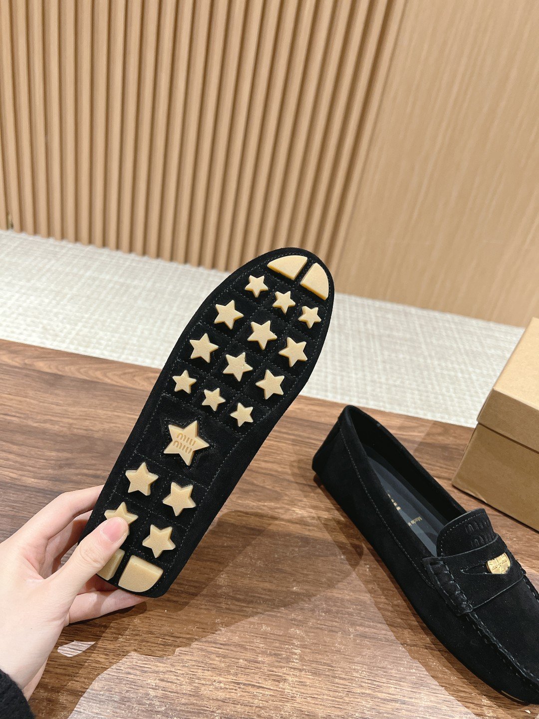 MiuMiu Miu Miu 24 spring and summer new beckoning coin loafers pentagram beanies! Loafers are highly recommended! Girls who can be cute love the small details are sort of let miu a whole pinch! Loafers these years wind blowing a lot of aesthetic fatigue new “small coins” really let a person a whole heart melted! In addition to the center of a copper coin this kind of poke people details, the shoe type overall are very showy! Lazy casual on the foot is very comfortable! Imported delicate cow suede material cowhide lining Size:35-42 (40/41/42 customized non-returnable)