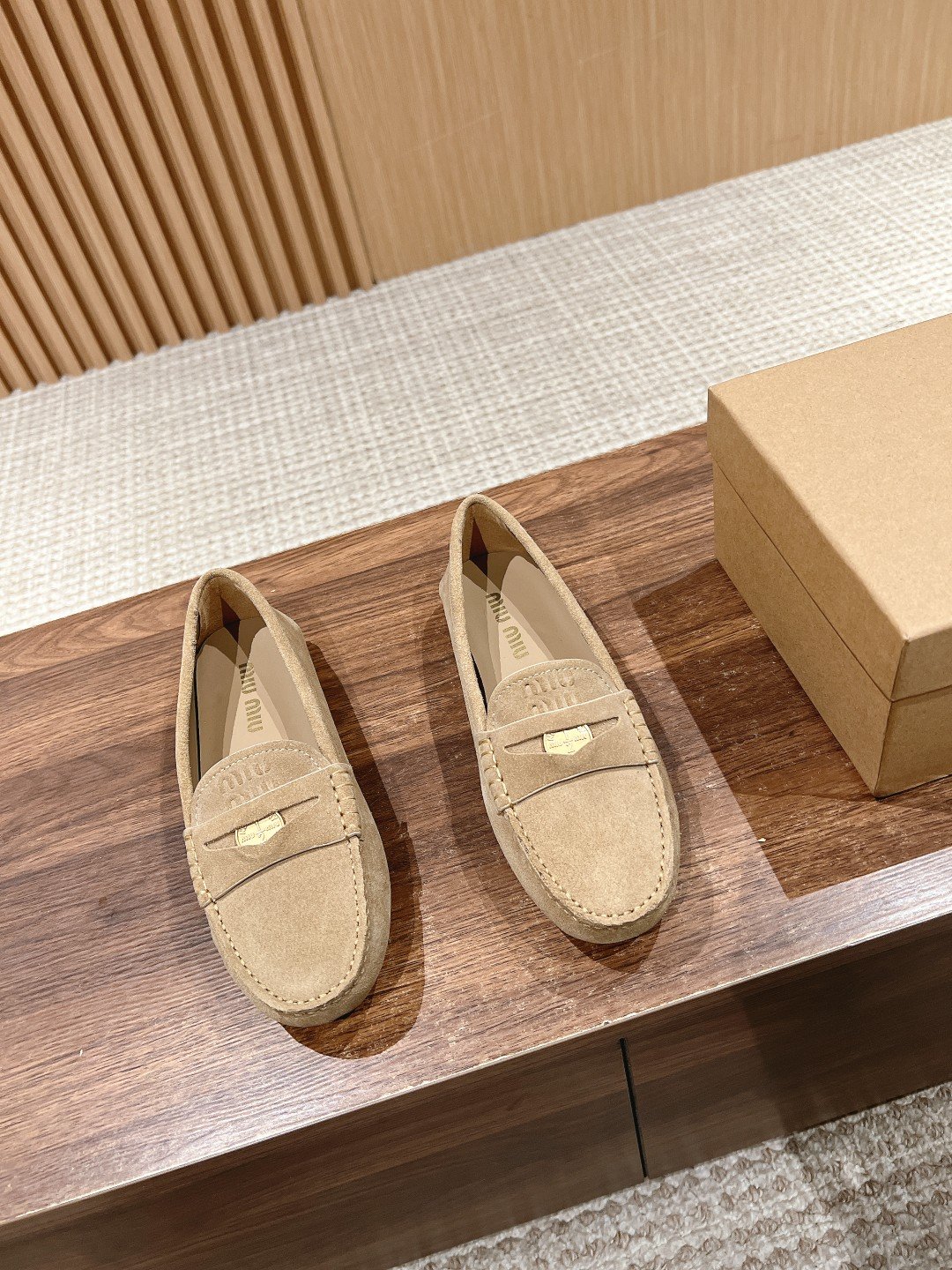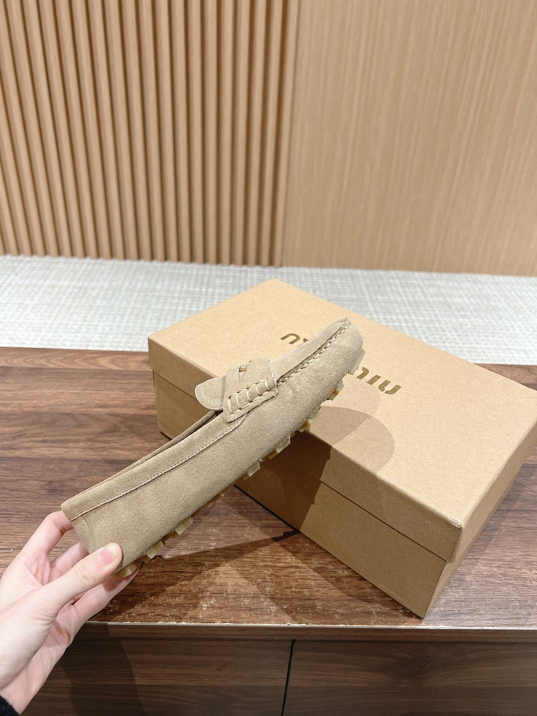 Home SHOES MIUMIU MiuMiu Miu Miu 24 spring and summer new beckoning coin loafers pentagram beanies! Loafers are highly recommended! Girls who can be cute love the small details are sort of let miu a whole pinch! Loafers these years wind blowing a lot of aesthetic fatigue new “small coins” really let a person a whole heart melted! In addition to the center of a copper coin this kind of poke people details, the shoe type overall are very showy! Lazy casual on the foot is very comfortable! Imported delicate cow suede material cowhide lining Size:35-42 (40/41/42 customized non-returnable)