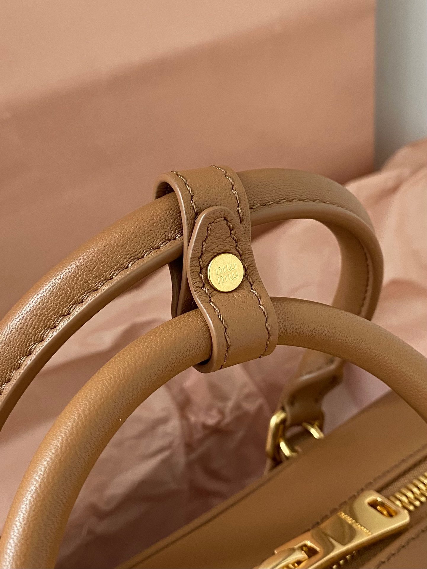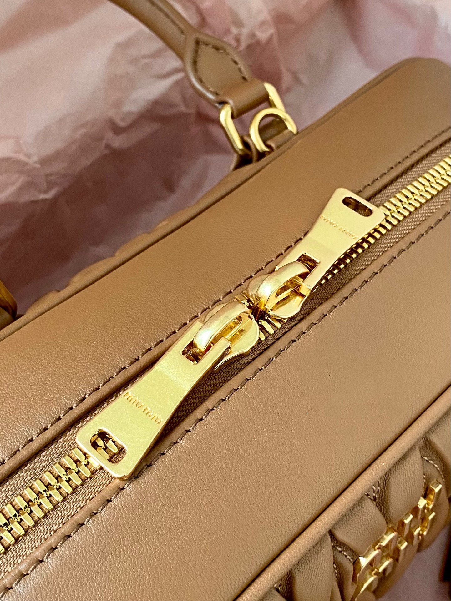 MIUMIU Pleated Bowling Bag Medium Brown Large Real Shots