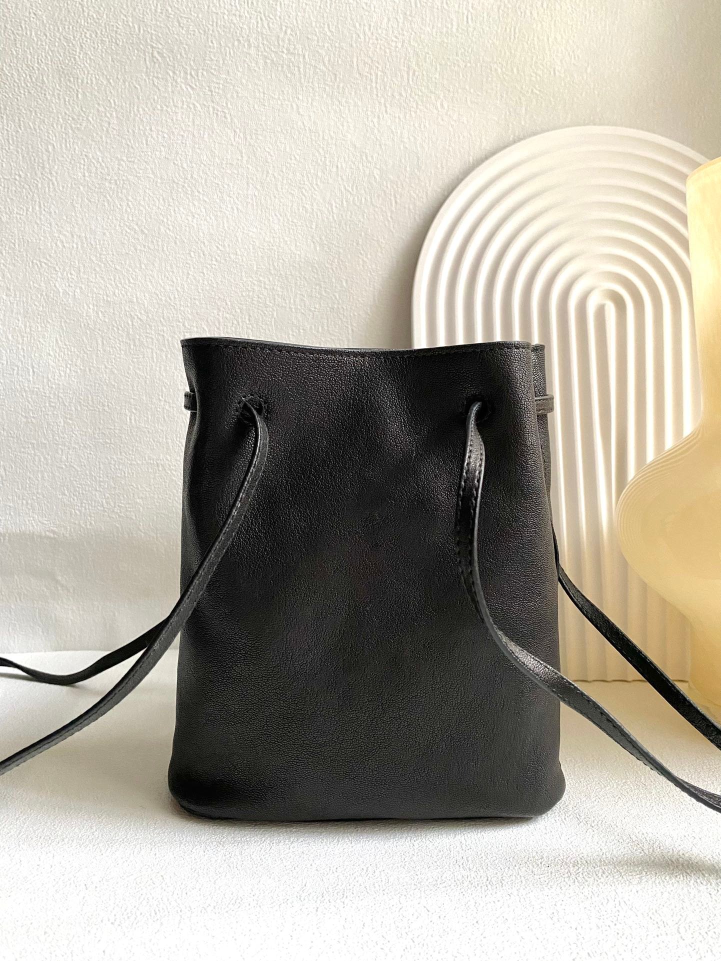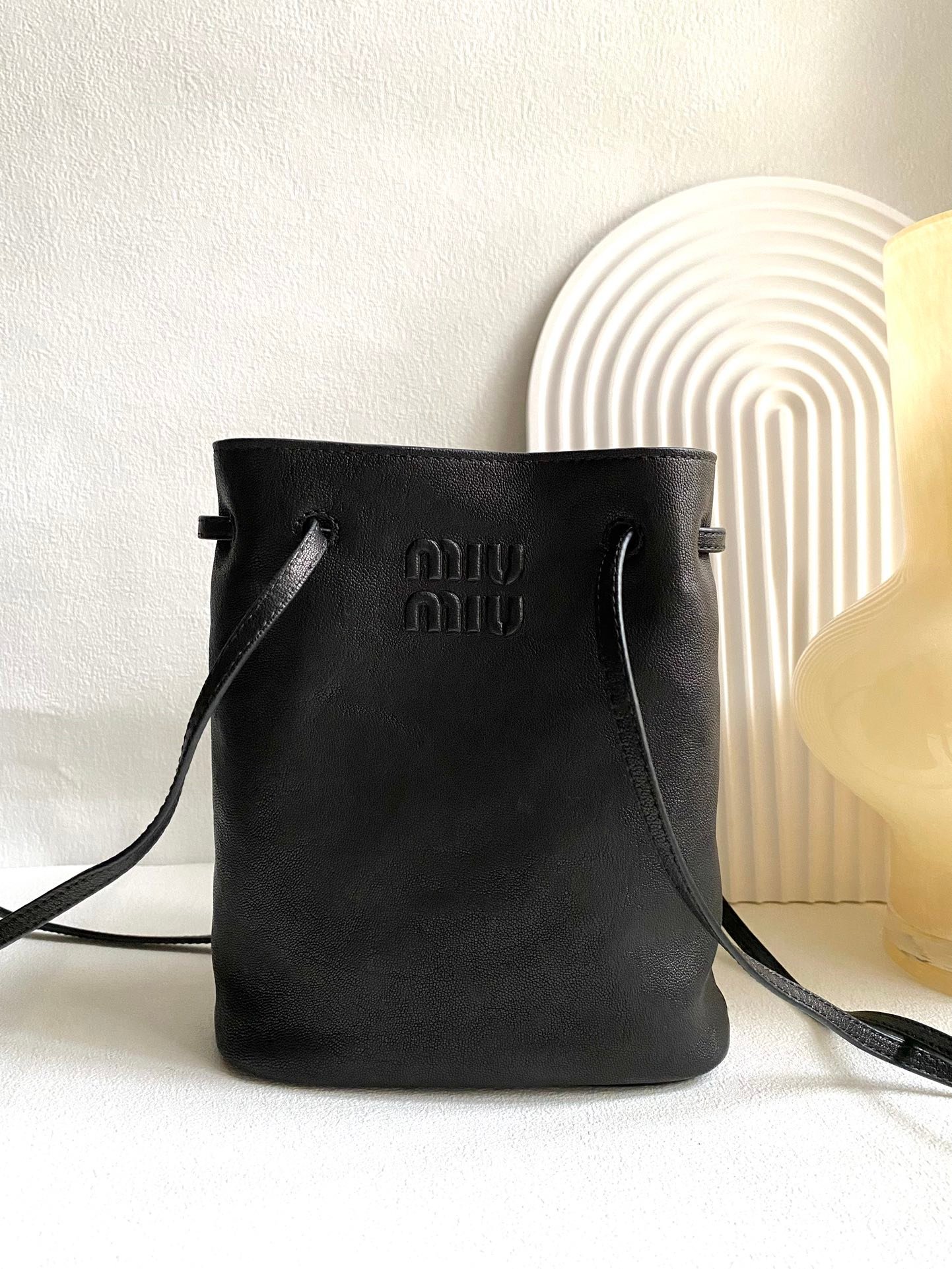 MIUMIU retro small bucket black a small number of spot to about la 🈶n good like this kind of casual chic feeling wow ~ especially this kind of soft sheepskin, give a person valiant exquisite feeling! The whole bag is simple and powerful, simple to carry can show the sense of unintentional high level ~ and the whole bag is very light, very light, very light! Don’t look at a small one, in fact, the capacity is quite able to load Oh ~ to be NIUNIU rebellious sweet wind dizzy la la la la! n0532058 (17×14×6cm)