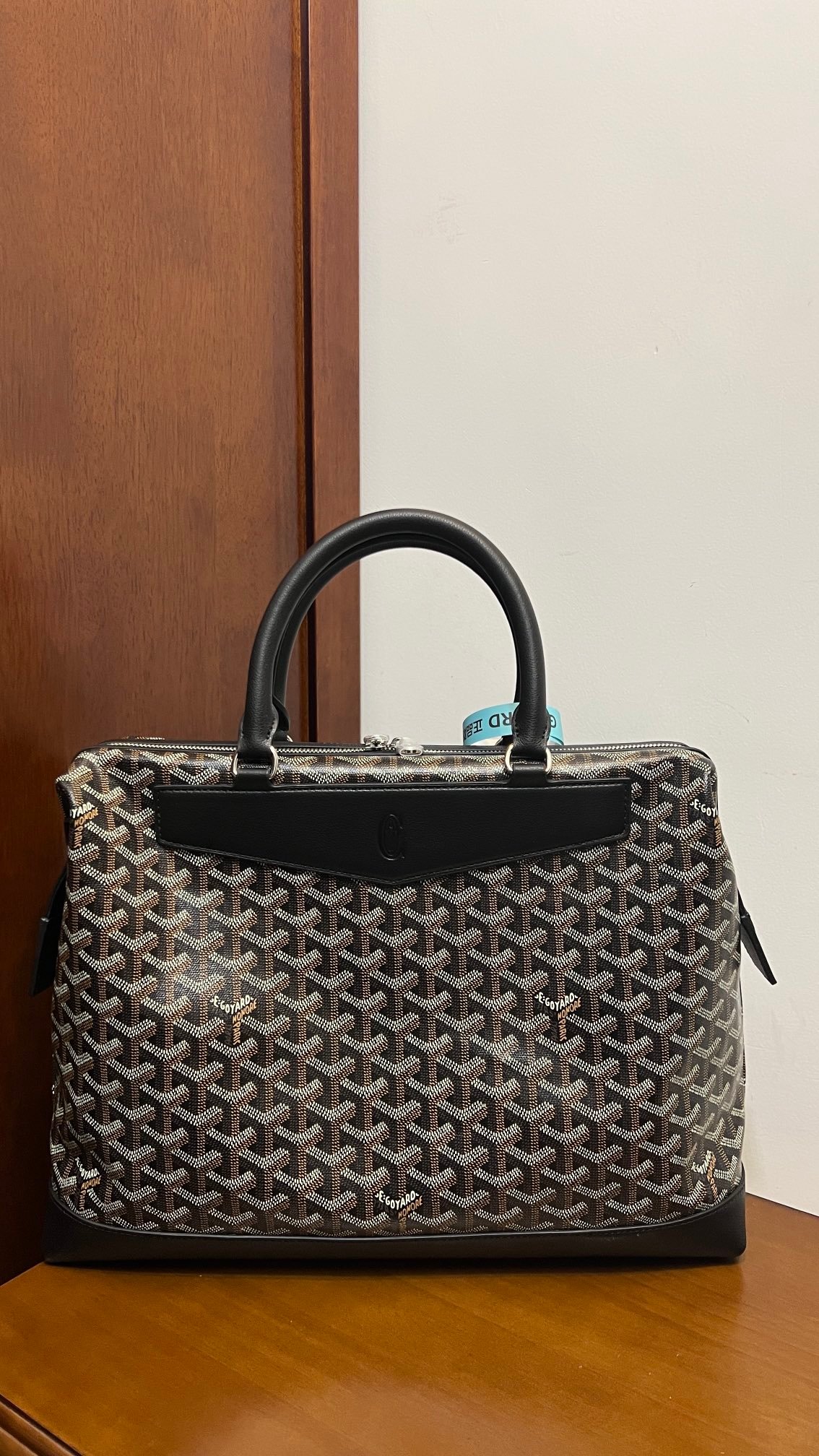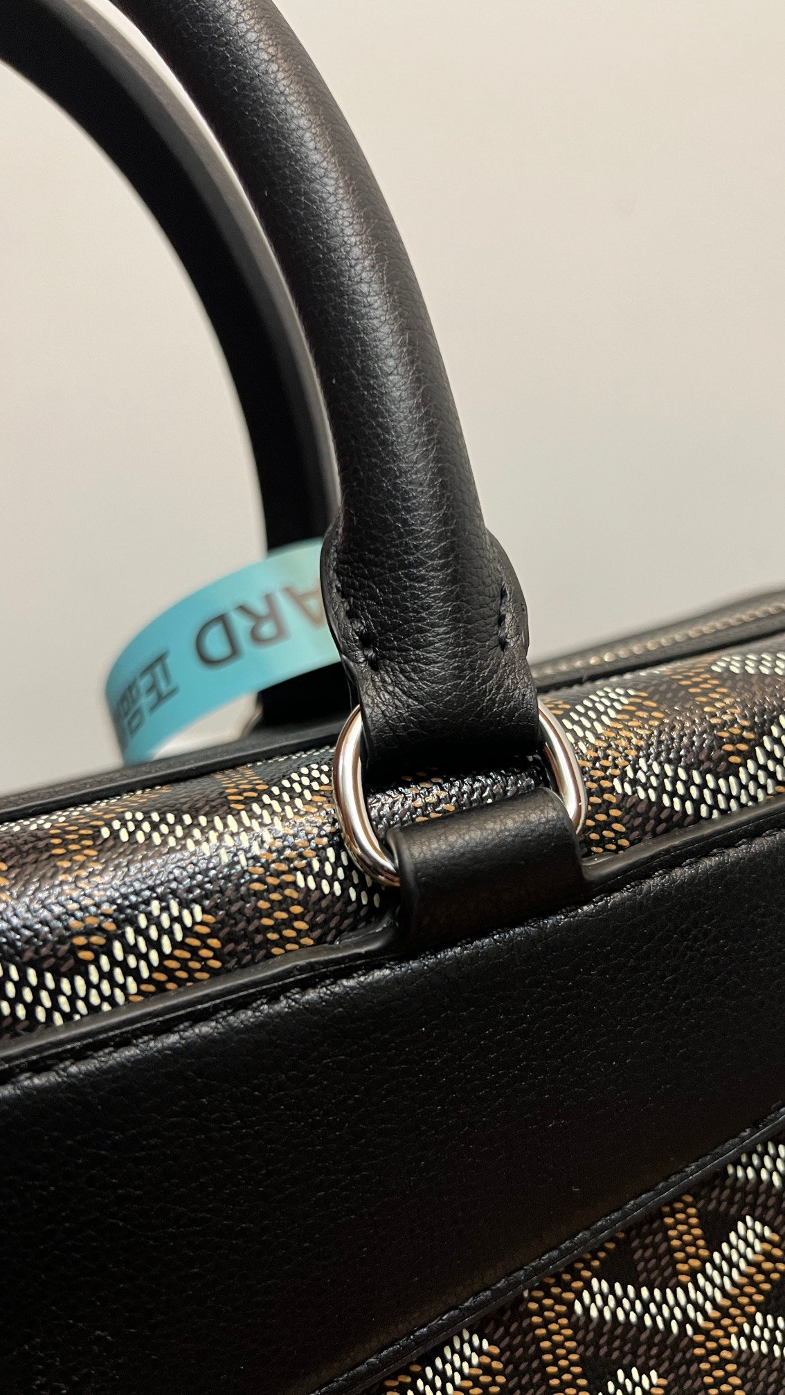 New Goyard Cisalpin Briefcase Double Zipper Closure Canvas Patchwork Leather Computer Tote Bag, Bags have expressions? Look at this bag, it seems to be smiling at you! The latest version of the goyard briefcase to get rid of the old-fashioned design, the characteristics of the quilted leather let a person bright, combined with retro and trendy, don't let the ordinary bag to bind your personality! Choose this bag and release your unique charm! 💥nSize: 29×9×39cmnnnn $200.00