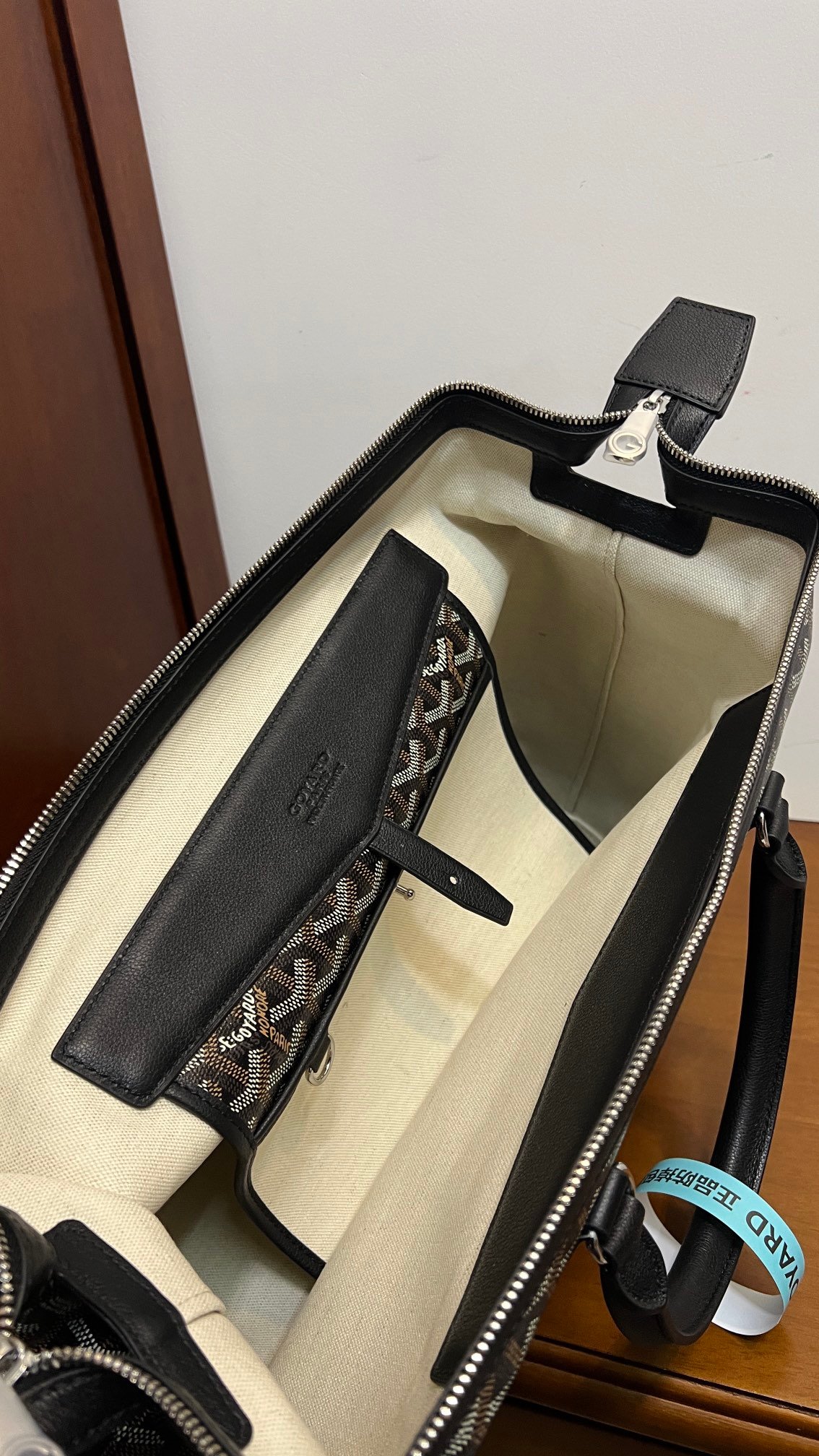 New Goyard Cisalpin Briefcase Double Zipper Closure Canvas Patchwork Leather Computer Tote Bag, Bags have expressions? Look at this bag, it seems to be smiling at you! The latest version of the goyard briefcase to get rid of the old-fashioned design, the characteristics of the quilted leather let a person bright, combined with retro and trendy, don't let the ordinary bag to bind your personality! Choose this bag and release your unique charm! 💥nSize: 29×9×39cmnnnn