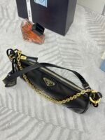 NEW PREMIERE 🔥, 1BC221 Oiled Wax Leather Chain Crossbody Bag, a replica of a classic 2002 style that can be worn on one shoulder as a crossbody handbag, brings together Prad’s classic design elements to create a sophisticated and versatile silhouette that bridges the gap between classic and modern design vocabularies. Crafted from leather with a refined, glossy finish, this sophisticated yet minimalist accessory features an elegant detachable chain handle for day-to-night wear. Embellished with shiny metal hardware, a leather key ring and enameled triangular metal logo, H11.5 x W26 x L6cm🔥🔥🔥🔥.