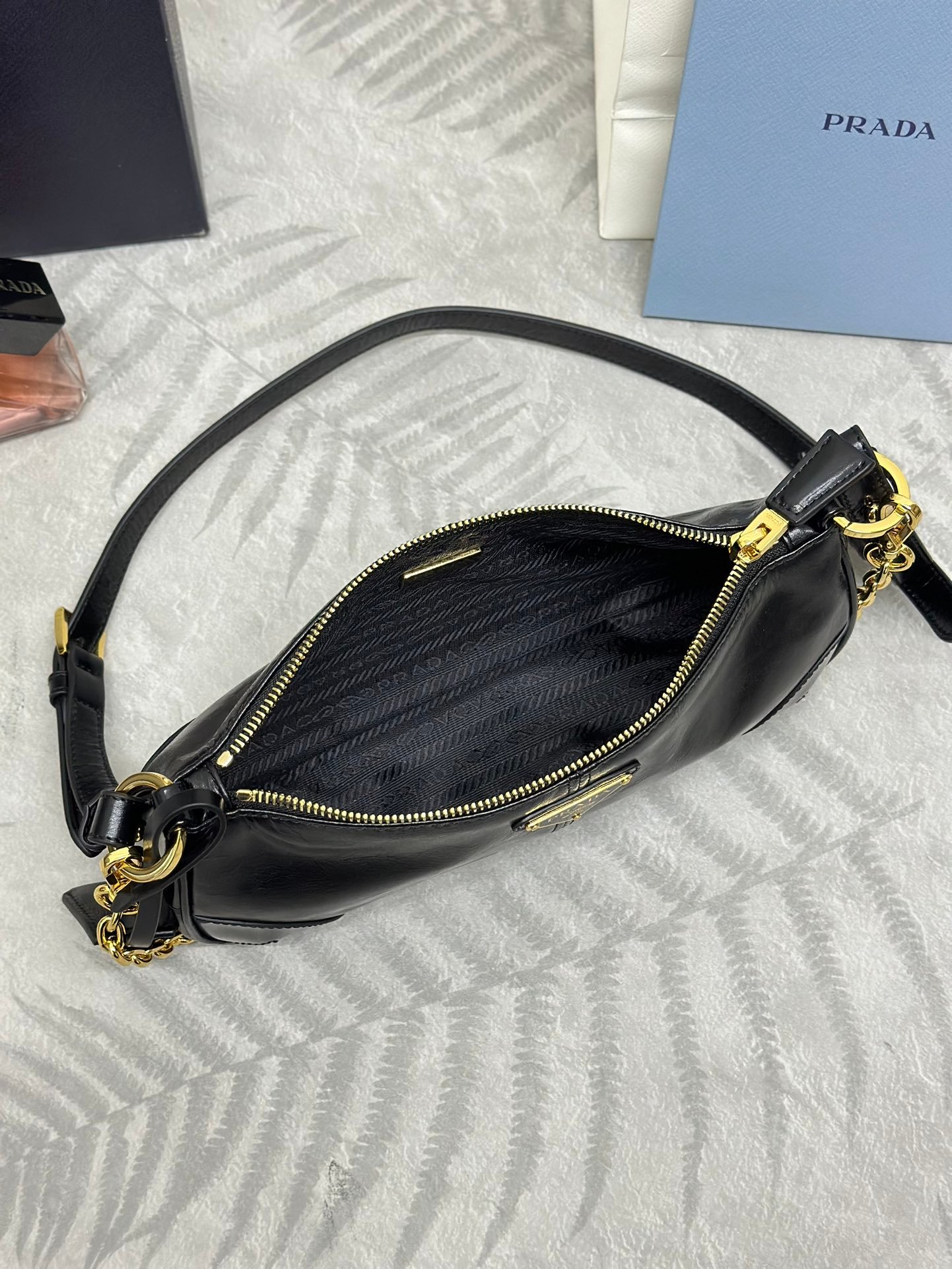 NEW PREMIERE 🔥, 1BC221 Oiled Wax Leather Chain Crossbody Bag, a replica of a classic 2002 style that can be worn on one shoulder as a crossbody handbag, brings together Prad’s classic design elements to create a sophisticated and versatile silhouette that bridges the gap between classic and modern design vocabularies. Crafted from leather with a refined, glossy finish, this sophisticated yet minimalist accessory features an elegant detachable chain handle for day-to-night wear. Embellished with shiny metal hardware, a leather key ring and enameled triangular metal logo, H11.5 x W26 x L6cm🔥🔥🔥🔥.