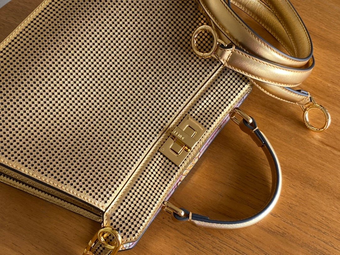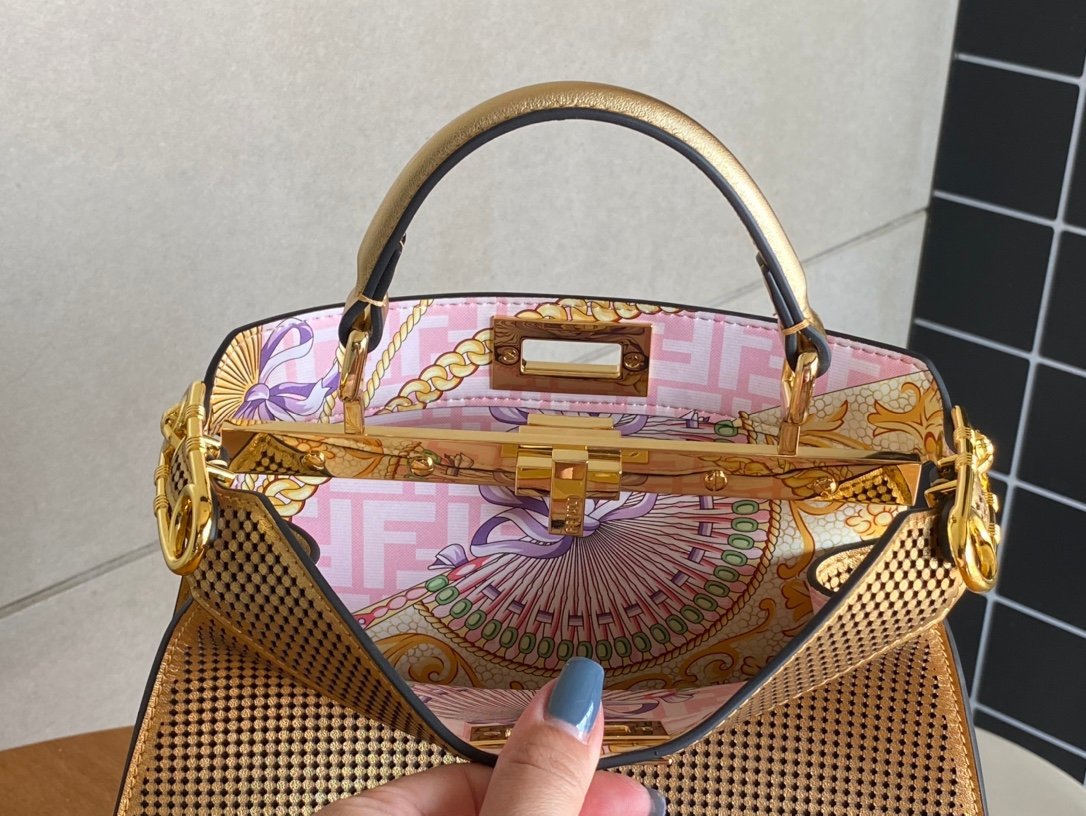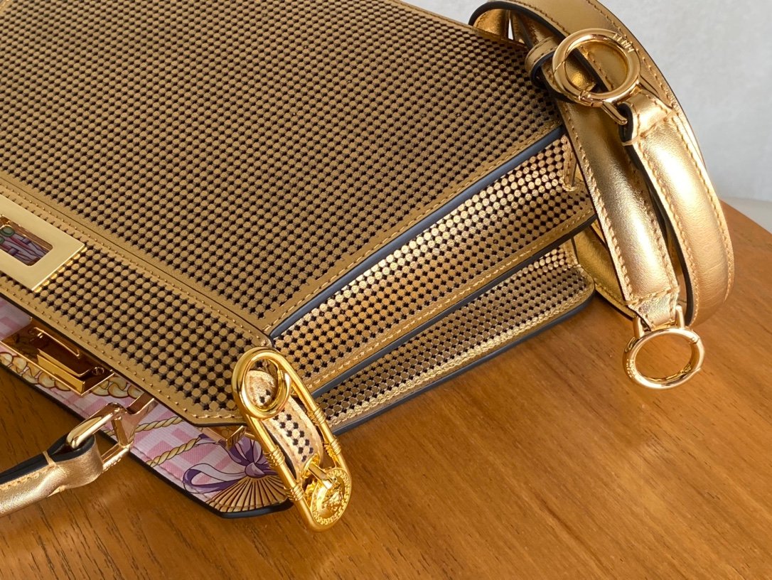 The last fendace peekaboo in the world, the bag is made of laminated leather laser perforated with a Versace byFendi print. Born out of a creative collaboration between the two fashion houses, the