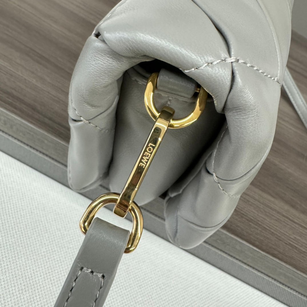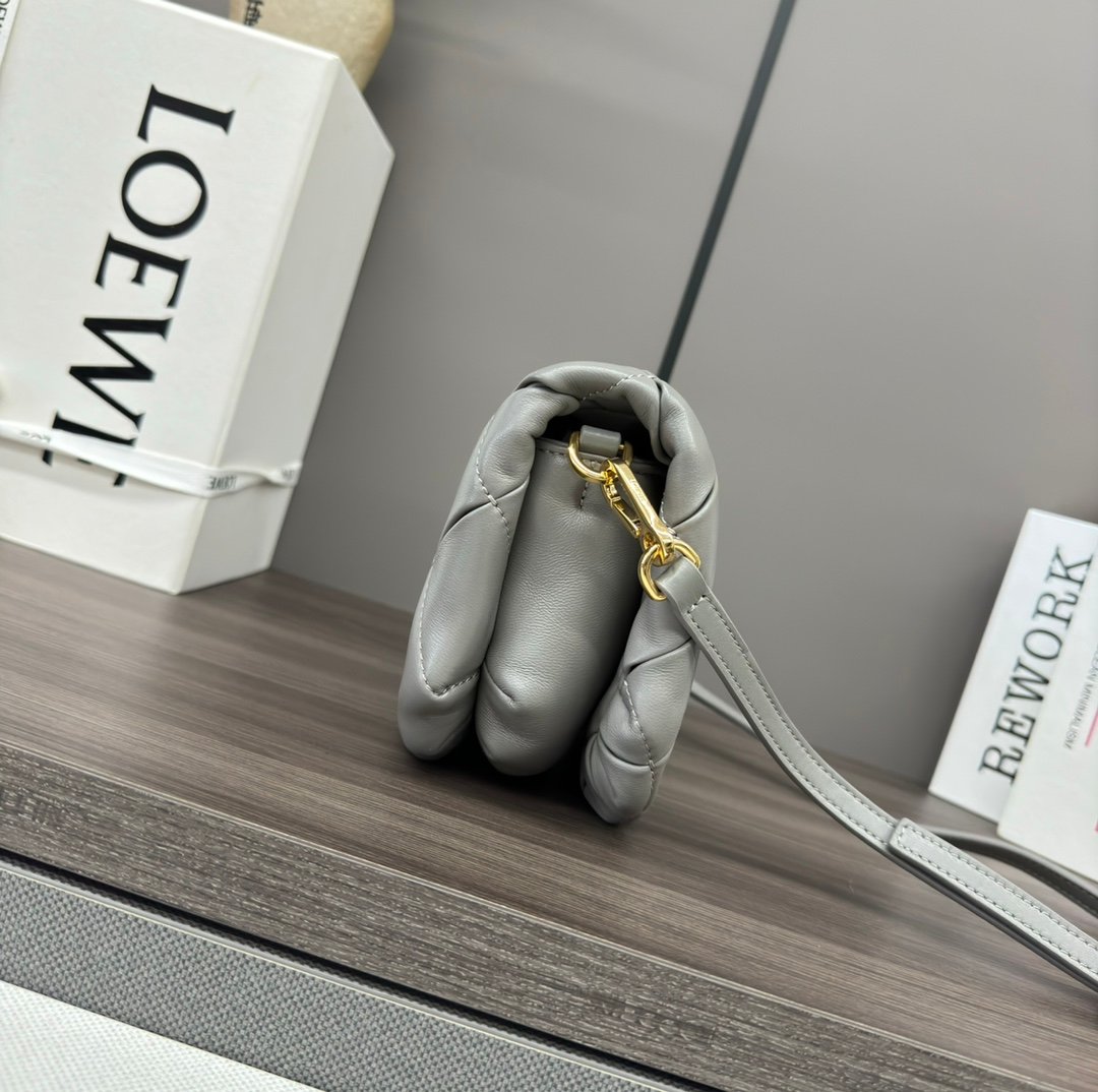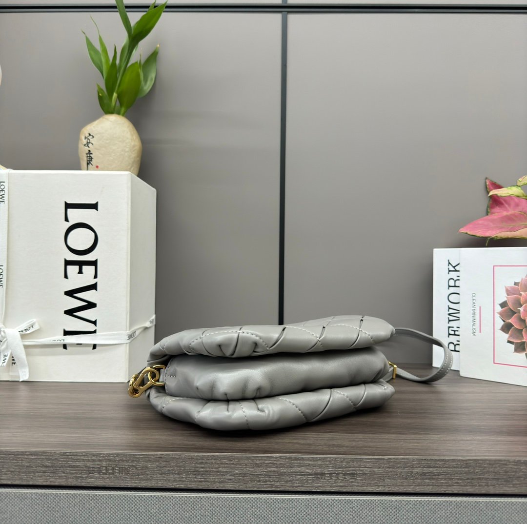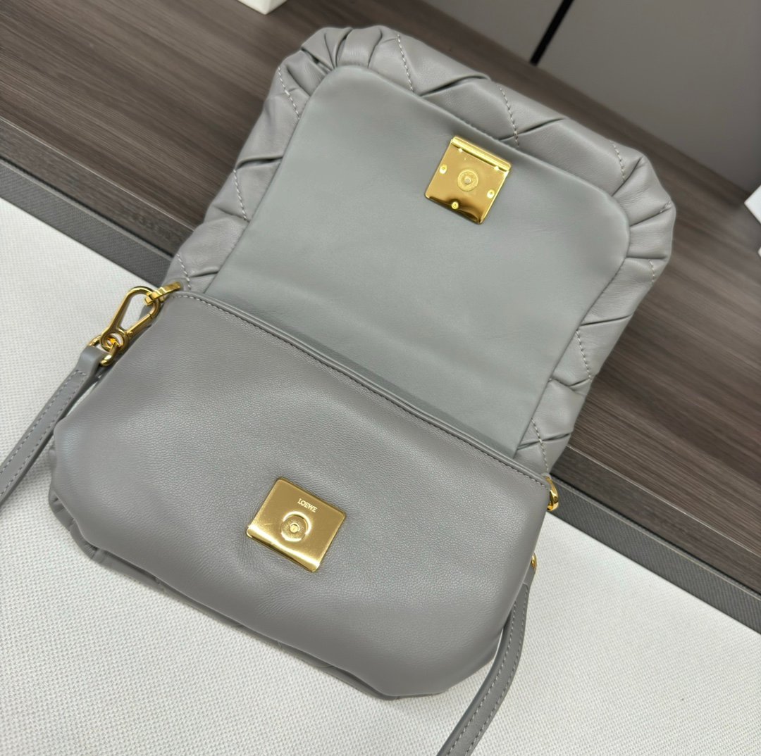 LO℮w℮🌟 Repeat Pleated Shiny Napa Sheep Leather Puffer Goya Handbag Inspired by the Goya aesthetic, the Puffer Goya Handbag brings a new sensory and tactile dimension through the shiny napa sheep leather with goose feather padding. Fitted with a detachable and adjustable metal donut chain and a detachable leather strap. This mini version is made from pleated sheep leather that has been cut, sewn and hand woven. Carry it on your shoulder or in your hand*Magnetic closure*This bag comes with a detachable chain and a leather strapOne main compartment, one zipper pocket and one slit pocket *Nappa sheepskin leather lining