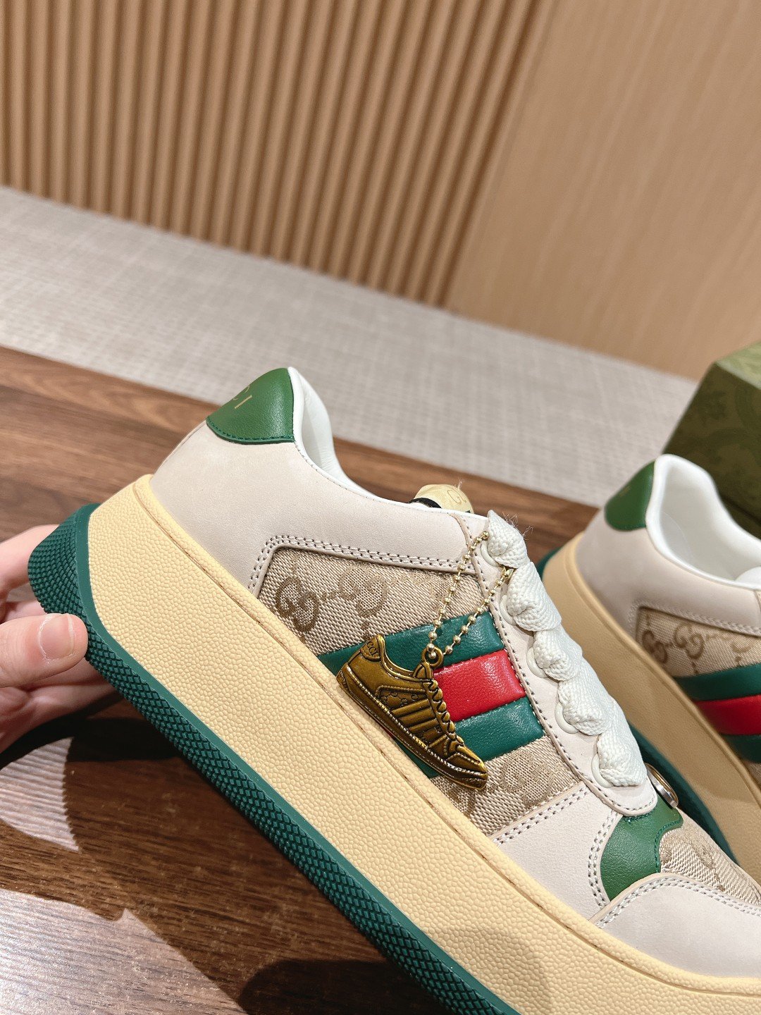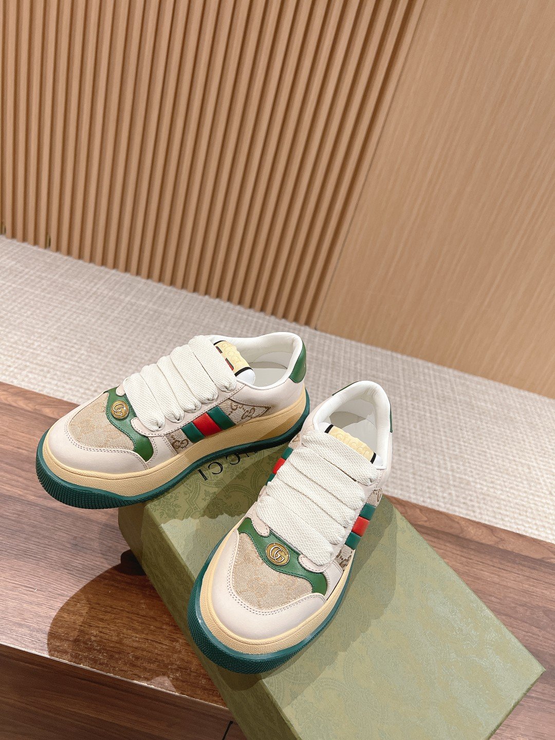 [Piรฑari] ๐๐ช๐๐๐ ๐ฟ๐ค๐ช๐ ๐ก๐ ๐๐๐ง๐๐๐ฃ๐๐ง Gucci newest chubby thick bottom dirty shoes ~~ couple models casual shoes Upper rub color cowhide splicing classic double G cloth fabric, sheepskin lining, cushion foot latex injection molded in one piece, private molded 6cm thick TPU two-color sole