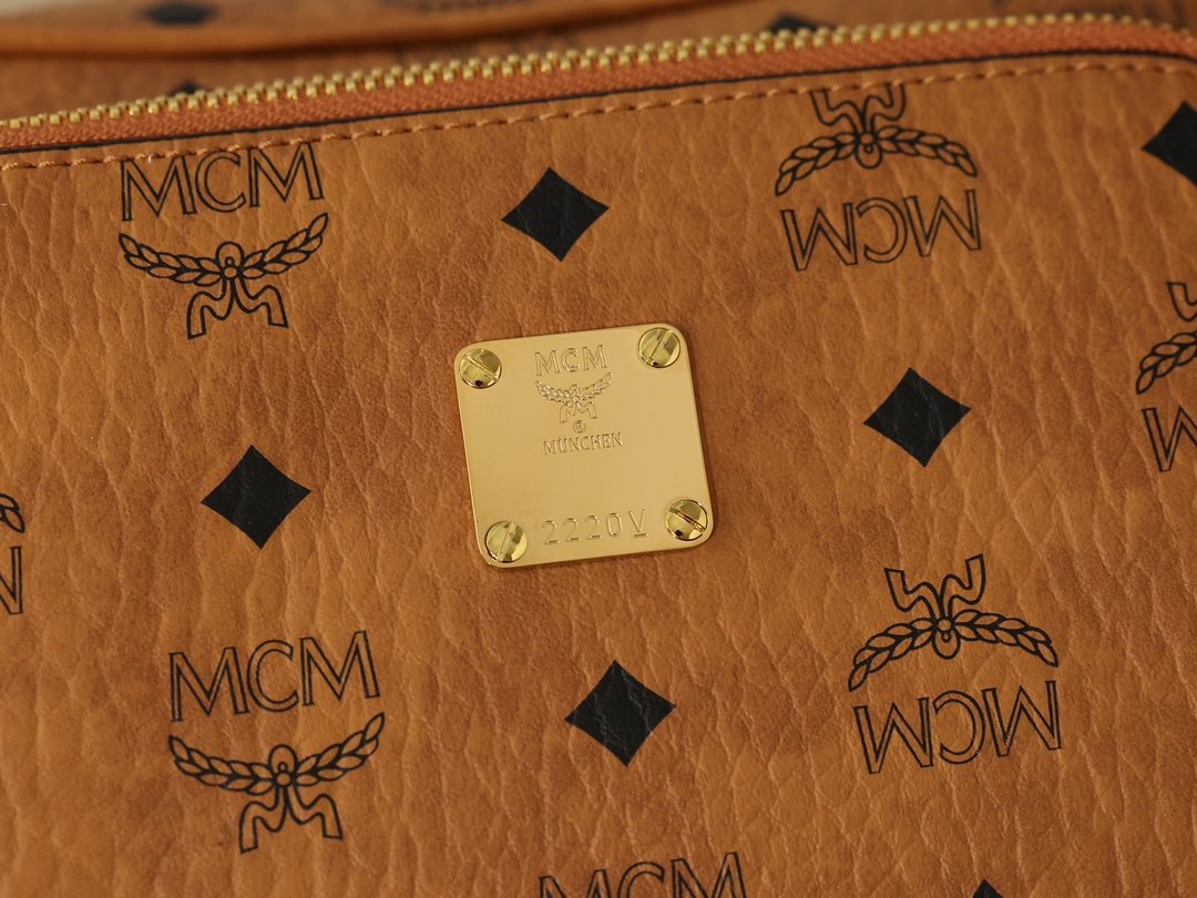 𝐌𝐂𝐌 𝐒𝐭𝐚𝐫𝐤 𝐕𝐢 𝐬𝐞𝐭𝐨𝐬n small-medium studded duffel bag n a new, upgraded version of the n exclusive ®️ cognac-colored vintage full-printed with n iconic Visetos coating # Co-ed bag # Ceiling in the backpack. Regularly structured and trimmed in luxurious Nappa leather, this duffel bag has a roomy interior and edgy edges with pyramid-shaped studded sides. nnModel No.: MMK6SVE37CO001nSize: 38*13*30cmnShoulder Strap: 71-87cm AdjustablenZipper: Bi-Directional Full-Closure ZippernColor: Cognac/ Brown 色🏾