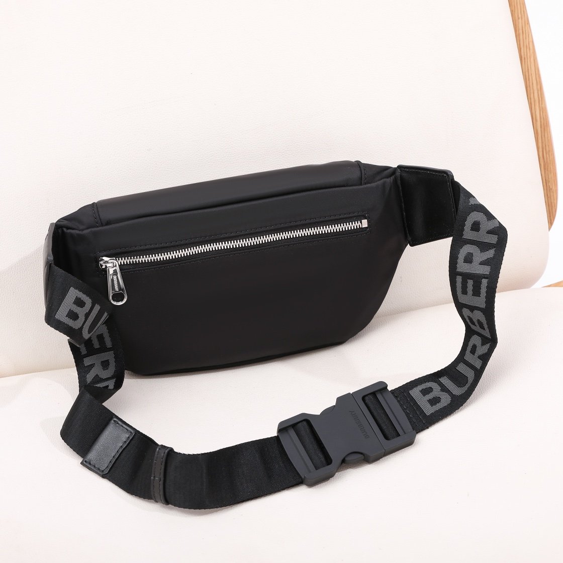 Taking cues from 1990s street style, B’s latest fanny pack is crafted from ECONYL®, adorned with the brand’s logo print and a jacquard-worsted Burberry monogram at the adjustable mesh nylon strap. ECONYL® is a sustainable nylon fabric made from recycled fishing nets, textile scraps and industrial plastics. Can be worn crossbody with a strap or tied around the waist.